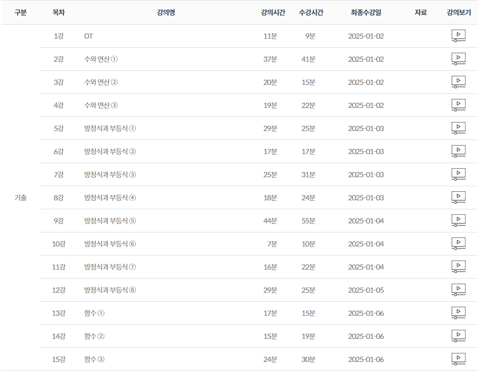 물론 강의를 듣는 것만으로 끝나는 것이 아니라 복습과 기본 공식·개념 암기는 스스로 꾸준히 해야 한다는 점도 다시 한번 느꼈습니다. 강의가 방향을 잡아주는 역할이라면, 반복 연습은 결국 제 몫이라는 생각으로 복습 루틴도 함께 만들고 있습니다.