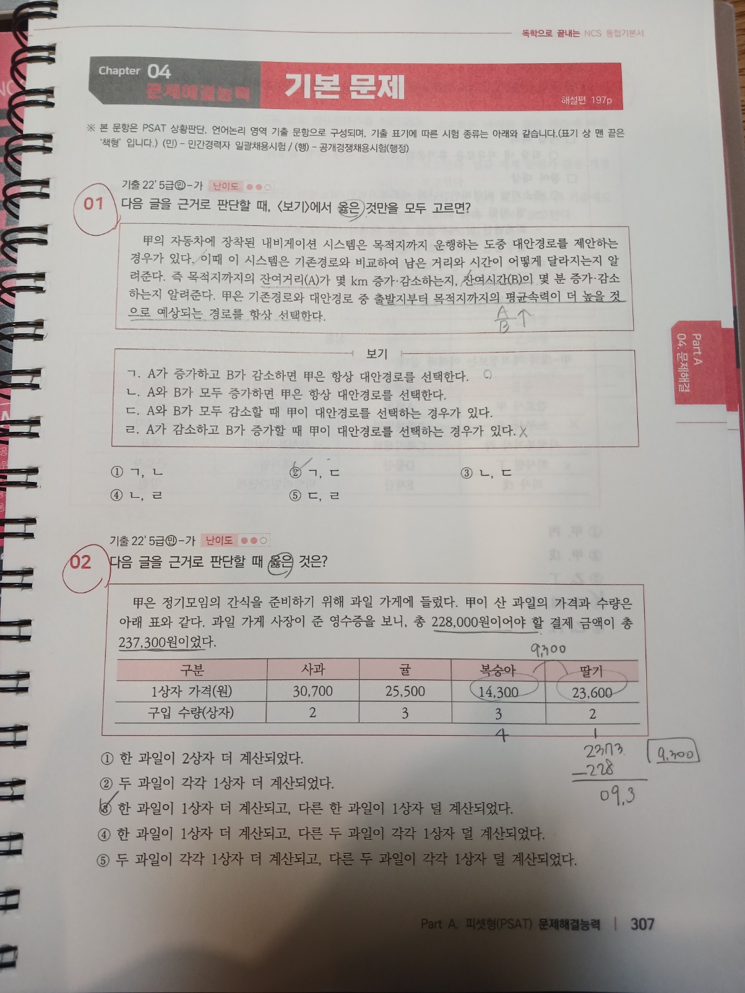 독끝 NCS 문제해결능력+자원관리능력을 사용해보고 좋아서 수리능력, 자료해석도 풀어봤다. 수많은 공겹 취준생들에게 혼자 독학하기에 정말 좋은 교재고 인강이라고하는데, 왜 그런지 지난번 문제해결능력+자원관리때도 느꼈지만 이번 수리능력, 자료해석 교재를 보면서도 또 느꼈다. 공기업 준비하는 독학러들에게 진짜 추천할만한 교재랑 인강이라고 생각된다. 공기업, PSAT 합격자의 NCS 문제풀이 시간단축 팁을 전체 문항에서 배울 수 있어 빠르게 답을 찾는 연습이 가능한 교재였다.
