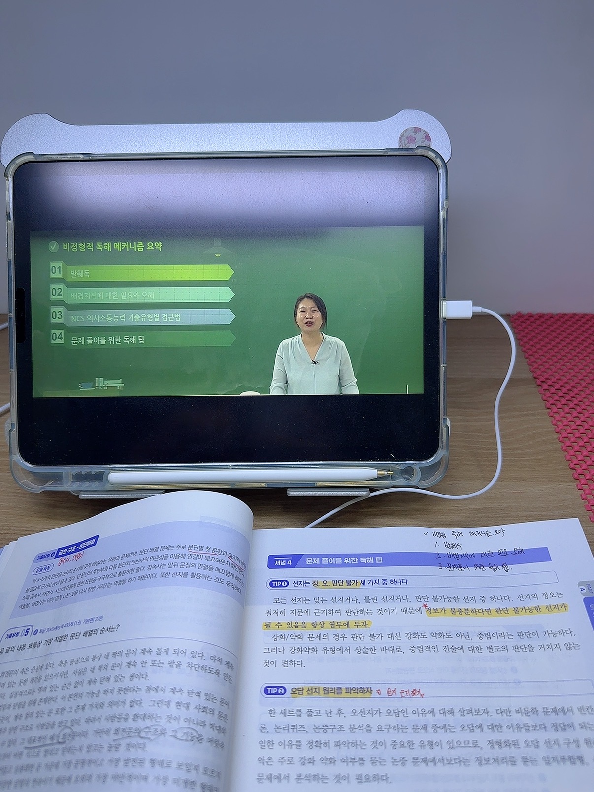 교재 구성도 실전 대비에 좋았습니다. 유형별로 포인트가 명확해서 복습할 때 “내가 어디서 막히는지” 체크가 쉽고, 강의 듣고 바로 교재로 반복하면 풀이 속도가 조금씩 올라가는 게 체감됩니다. 아직은 어렵게 느껴지는 부분도 있지만, 이번 주에 배운 유형들은 오답노트로 패턴 정리 → 같은 유형 2~3회 반복 → 시간 재면서 재풀이 방식으로 꾸준히 늘려갈 계획입니다.