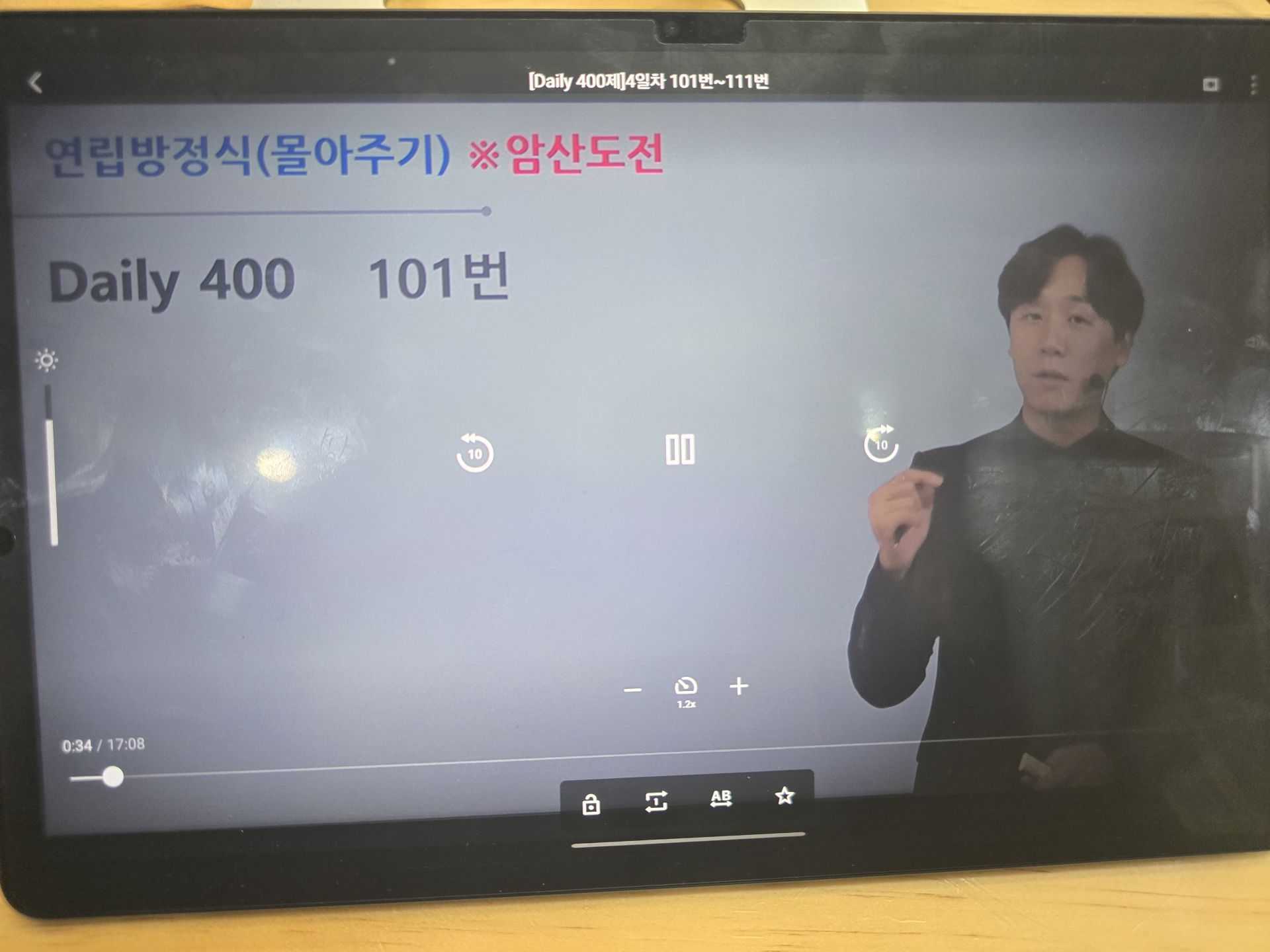 다시 풀어보라는 문제는 일시정지 하고 다시 풀어보았고 선생님 풀이법과 비교해보았습니다.