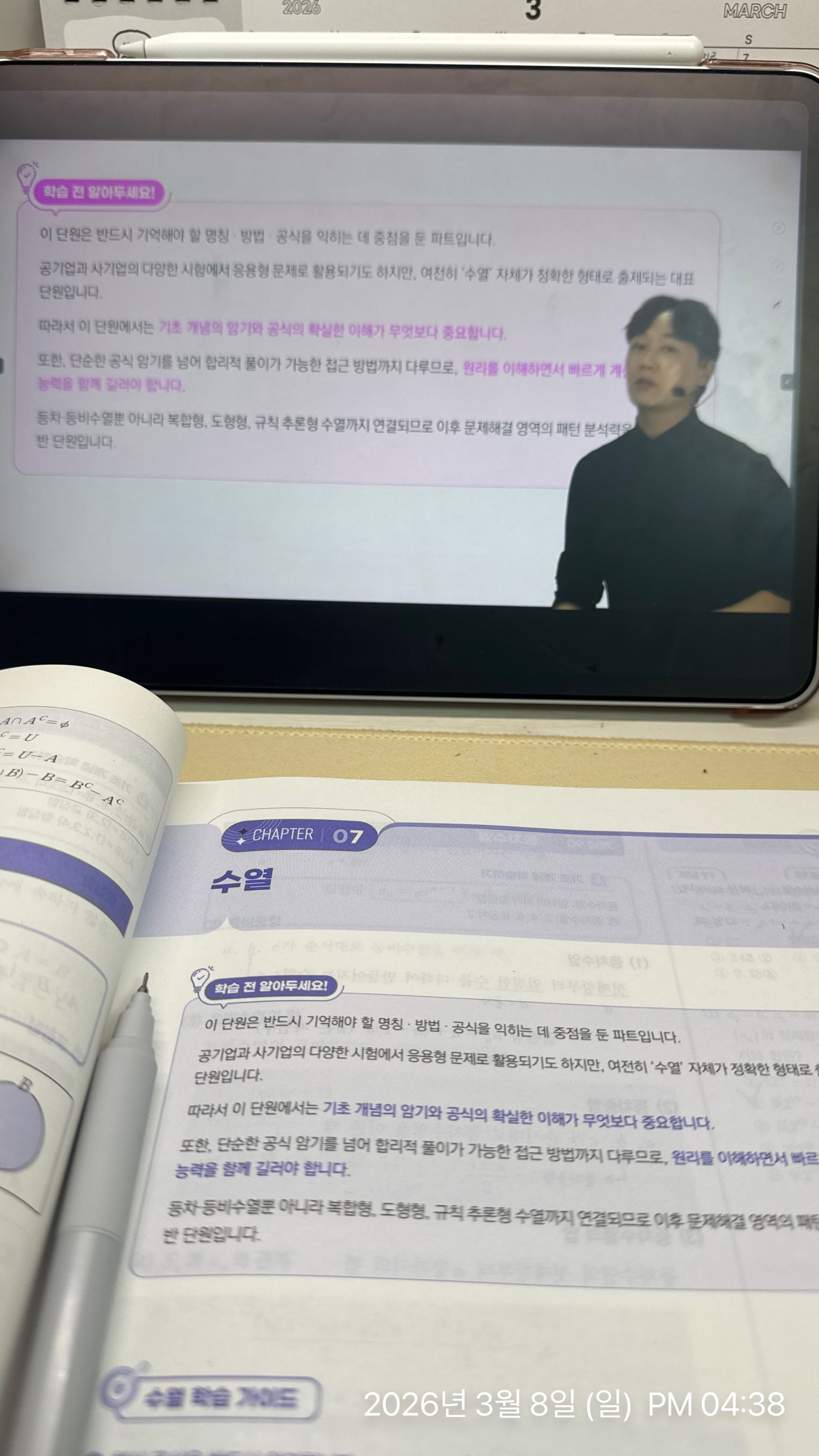 저는 수포자였기 때문에 기초수학과 같이 병행하였구요 기초수학을 듣고 기본서를 듣게 되니까 훨씬 더 이해에 도움을 받을 수 있었고,