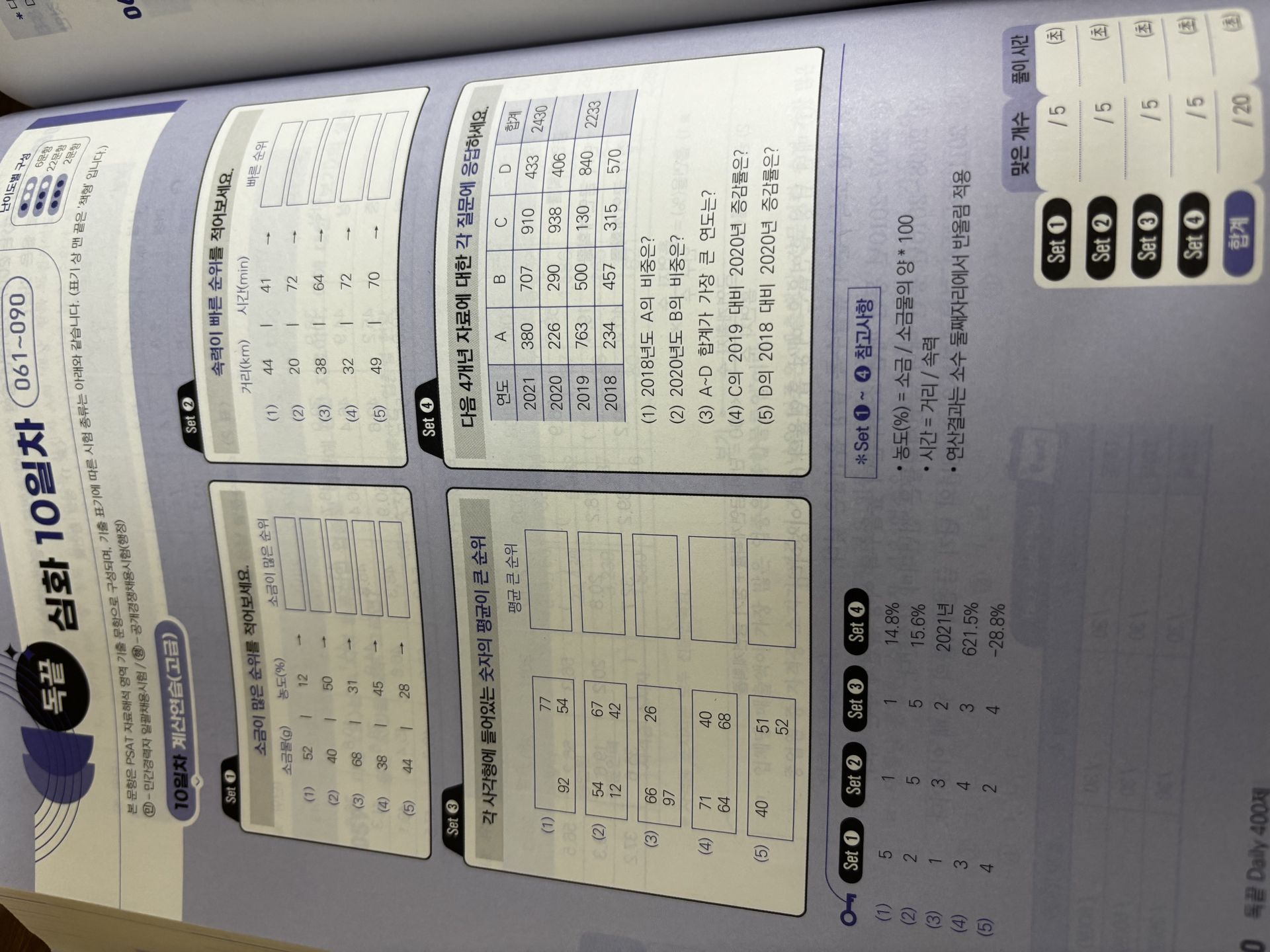 또한 강의에서 배운 비율표를 실제 문제 풀이에 활용하면서 계산 속도와 정확도가 높아졌습니다. 강의를 통해 단순히 문제를 많이 푸는 것이 아니라 효율적인 풀이 방법을 체화하는 시간이었습니다.