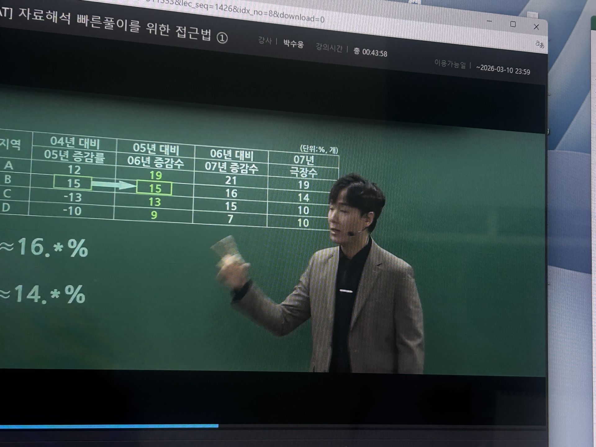특히나 응용수리나 자료해석 같이 계산을 요하는 과목들은 필히 수강해보시는거 추천드려요.