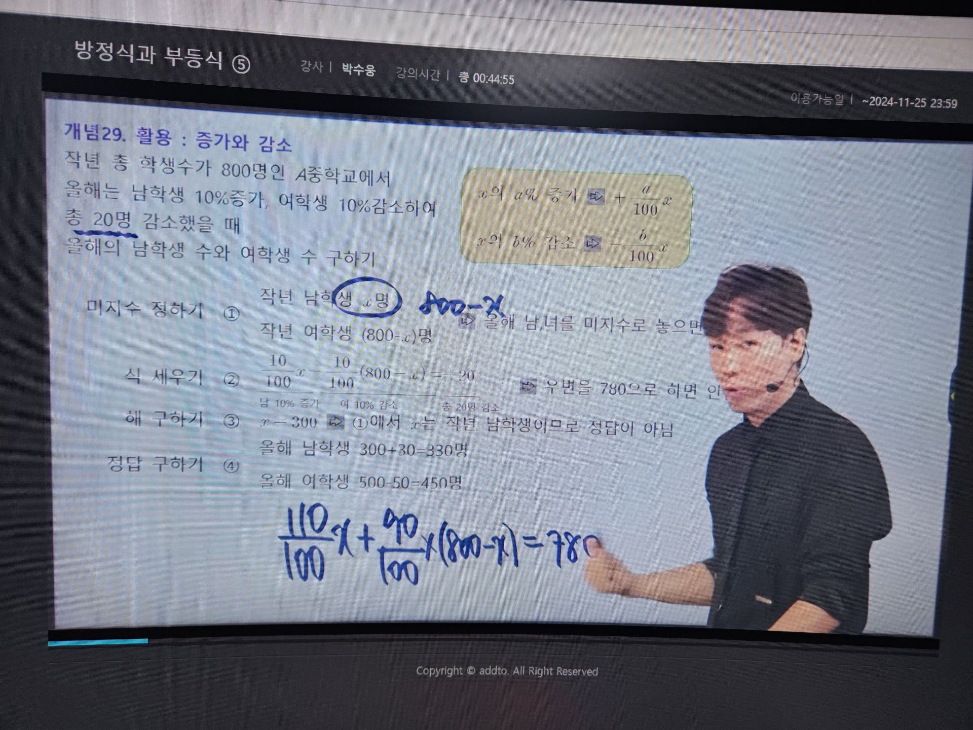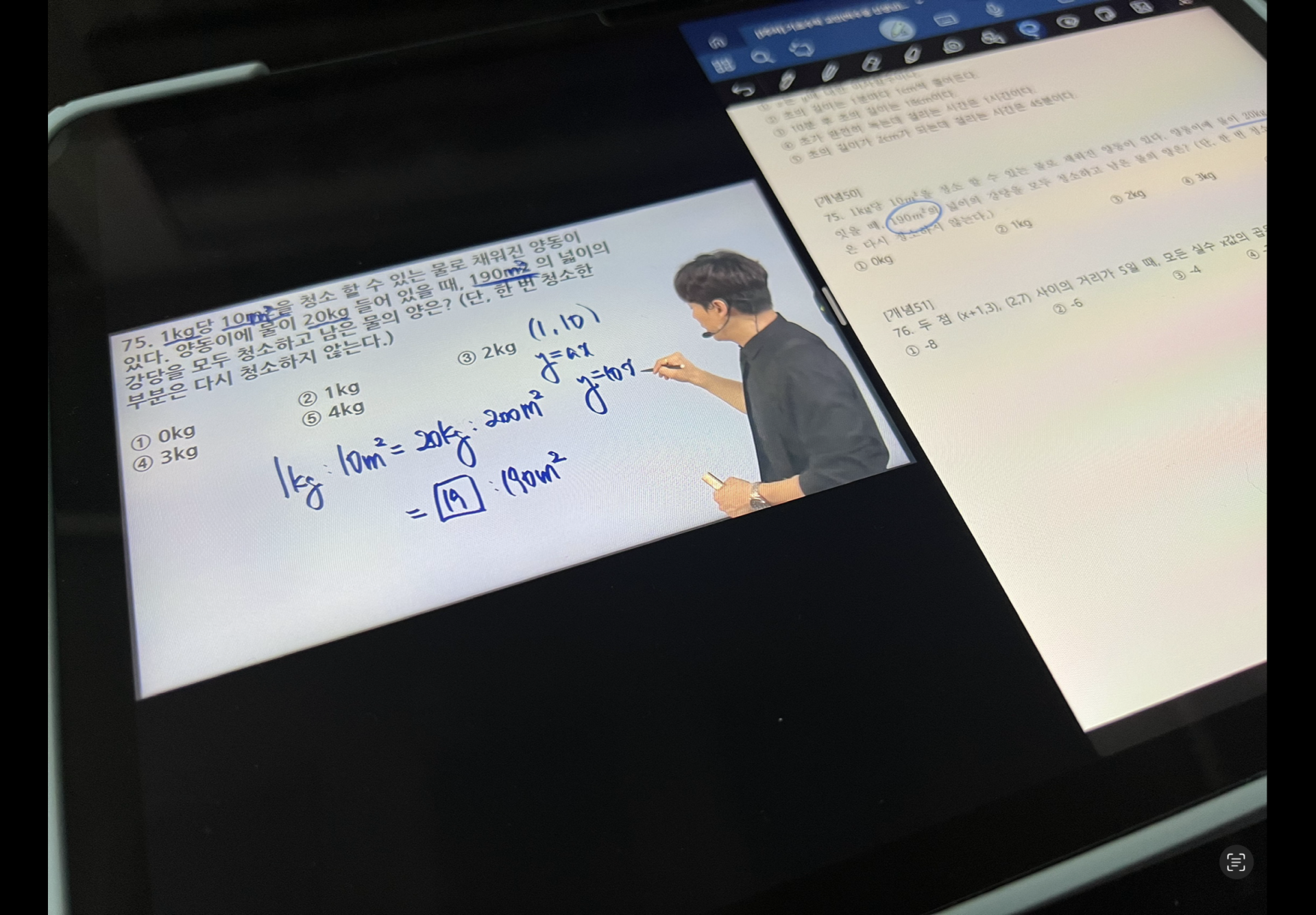 다시 풀어보라는 문제는 일시정지 하고 다시 풀어보았고 선생님 풀이법과 비교해보았습니다.