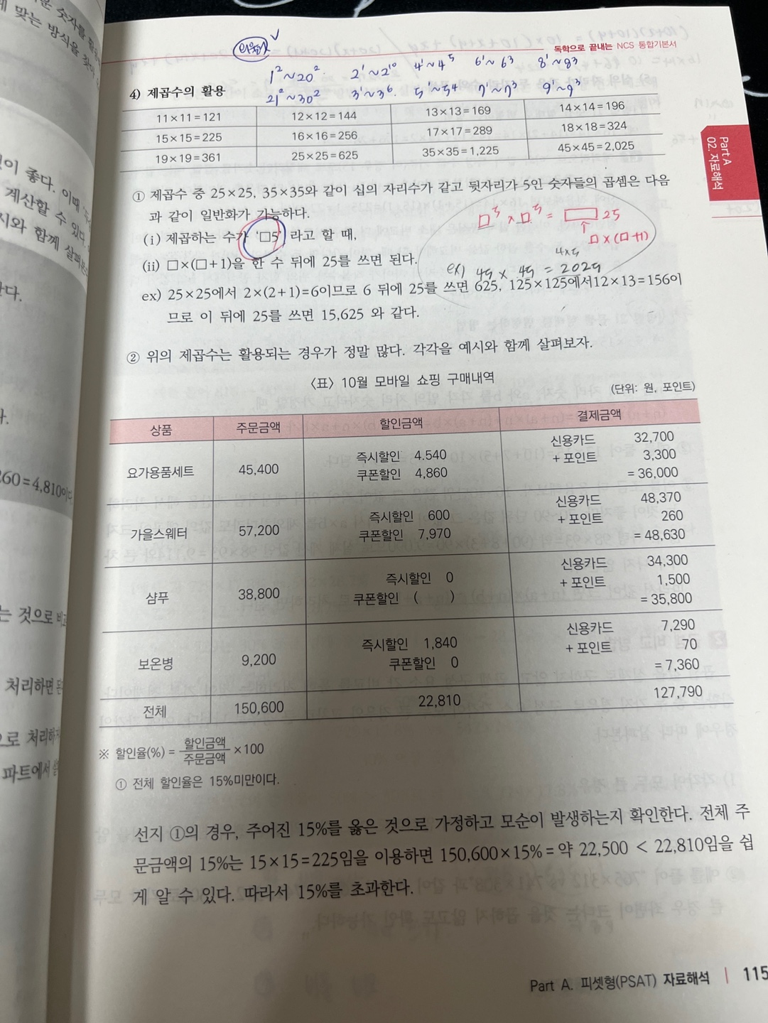 처음 시작할 때만 해도 자신만만했던 제 과거를 반성합니다…또르르.. 책을 펴자마자 마주한 응용수리와 자료해석의 당혹감은 정말 잊지 못해요ㅠㅠ 중학 수학 내용이라 쉬울 줄 알았는데 막상 풀려니 손도 못 대겠더라고요. 하지만 다행히 수웅쌤을 만나서 극복하고 있는 것 같아 기쁜 마음으로 후기작성합니다!
