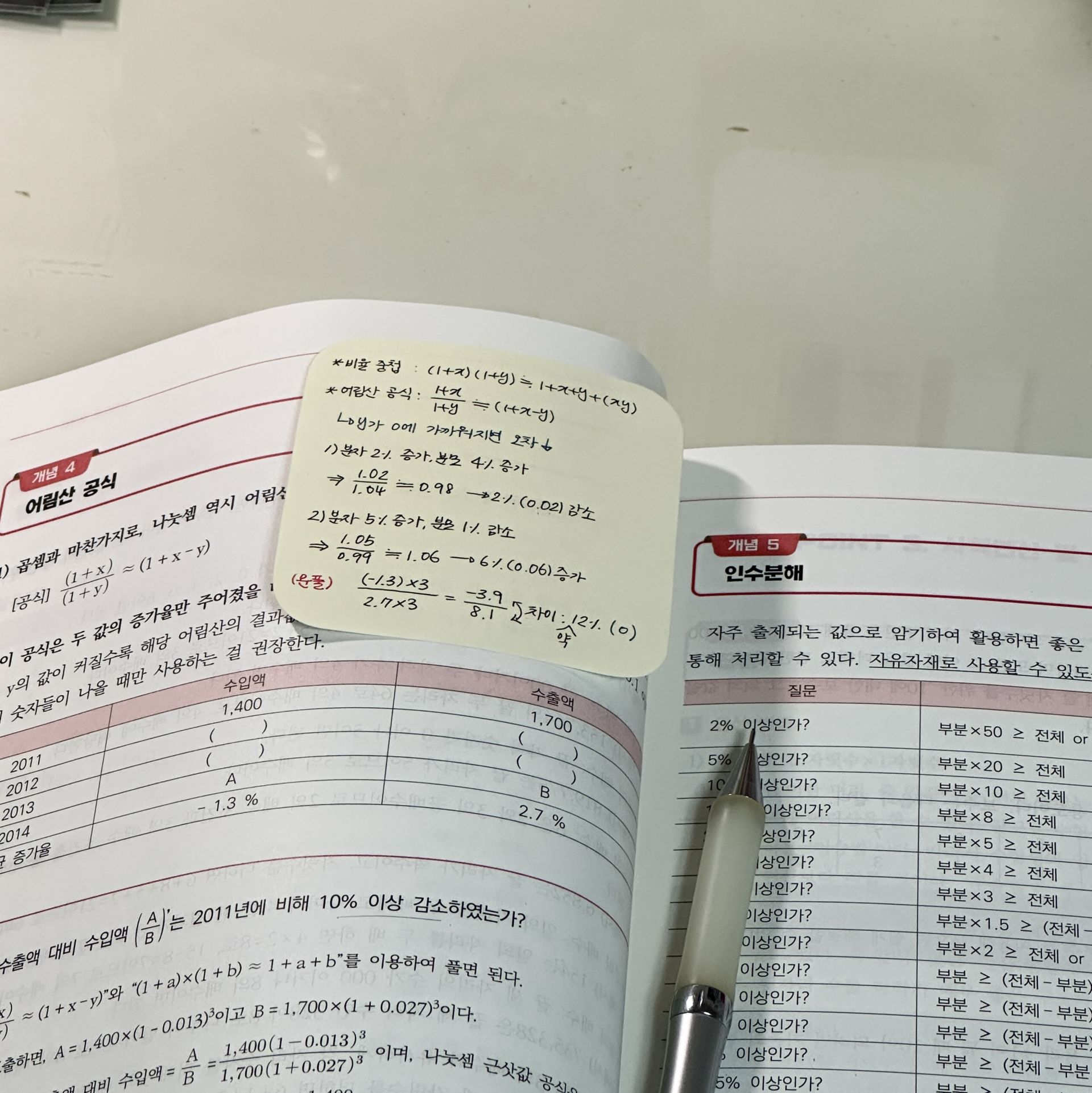 지난번에 독끝 기초 NCS 스터디를 진행하면서 기초 수학의 중요성을 절실히 깨달았습니다. 문제를 풀 때 기본적인 계산 실수가 반복되었고, 시간이 오래 걸리는 경우가 많아 효율적으로 문제를 해결하는 데 어려움을 겪었습니다. 그래서 이번 기회에 기초 수학 스터디에 참여하게 되었고, 수업을 들으면서 부족했던 개념을 체계적으로 정리할 수 있었습니다.