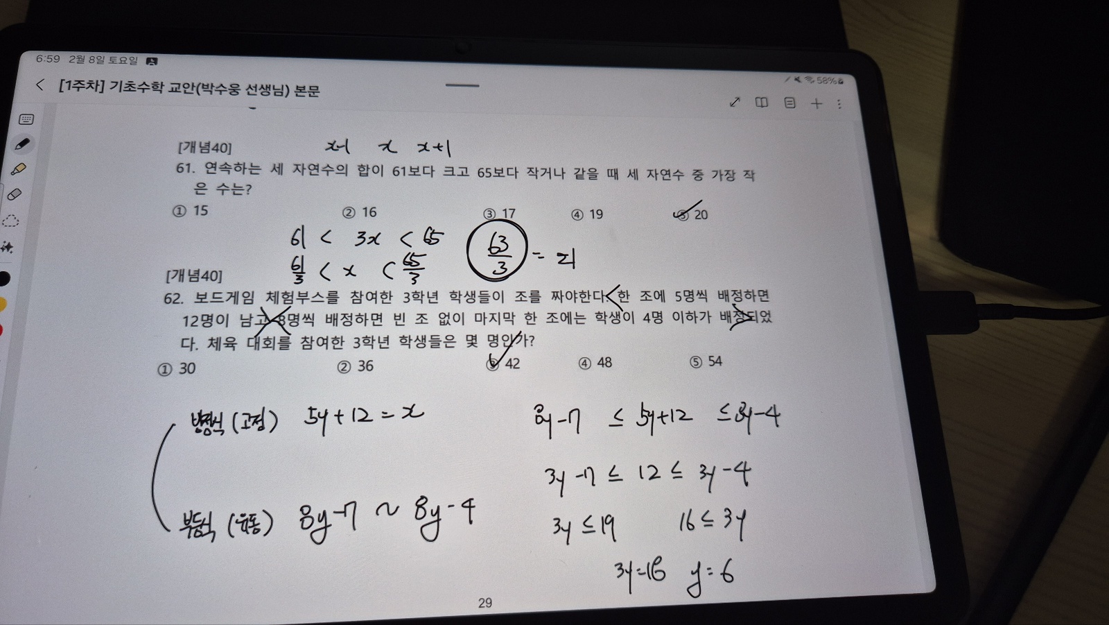 의수문자 전체 강의로 구매했고, 특히 수학은 쌩기초뷰터 잡아쥬셔서 너무 좋았습니다. 다른데가면 꿀팁이라고 알려주긴 하는데 그건 적용 가능한 범위가 너무 한종적이어서 특수한 상황에서만 적용되고 이런게 많더라고요. 박수옹 선생님은 기본기 기반으로 팁을 알려주셔서 그거 따라갔습니드. 쌤 덕분에 기초 잘 쌓았습니다.