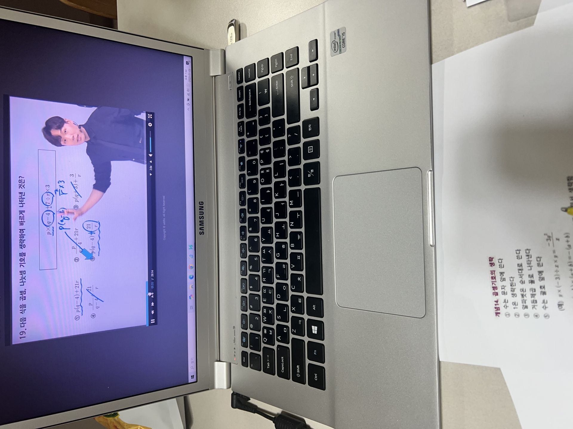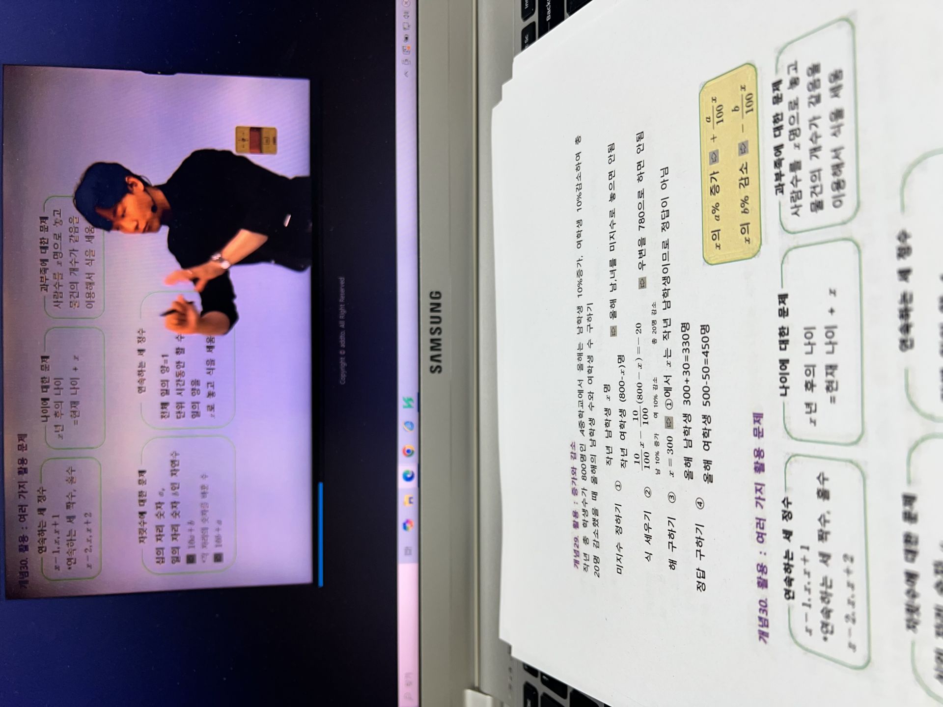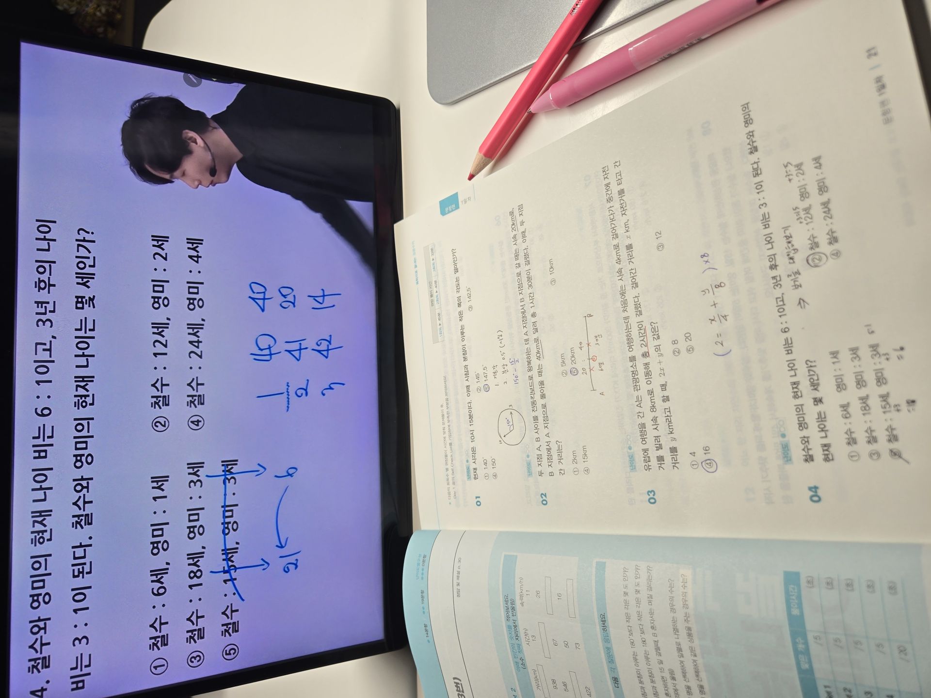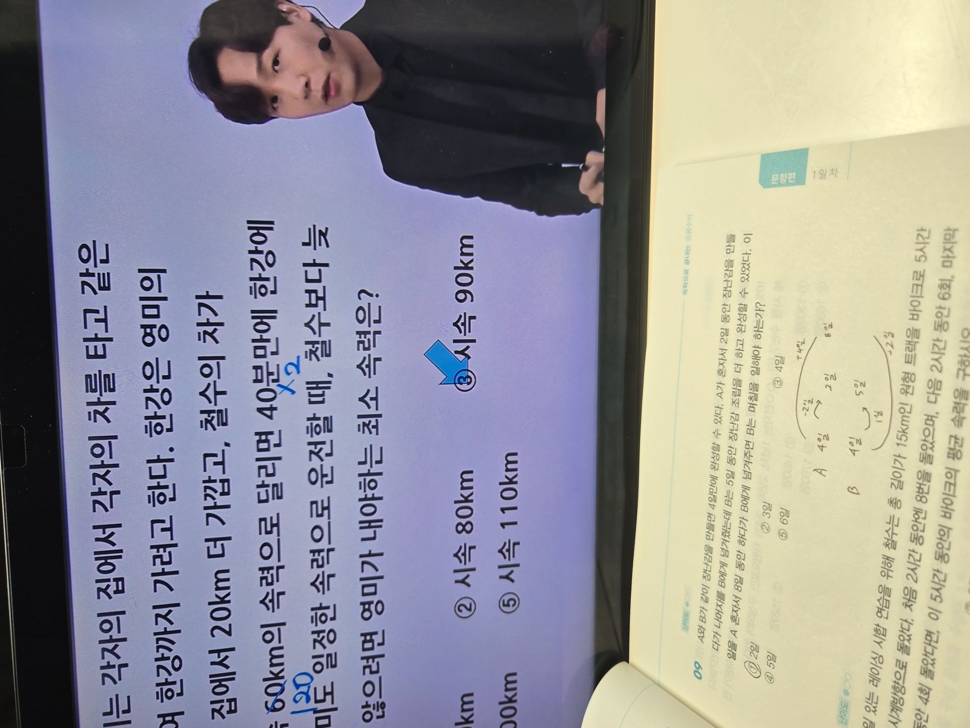 다시 풀어보라는 문제는 일시정지 하고 다시 풀어보았고 선생님 풀이법과 비교해보았습니다.