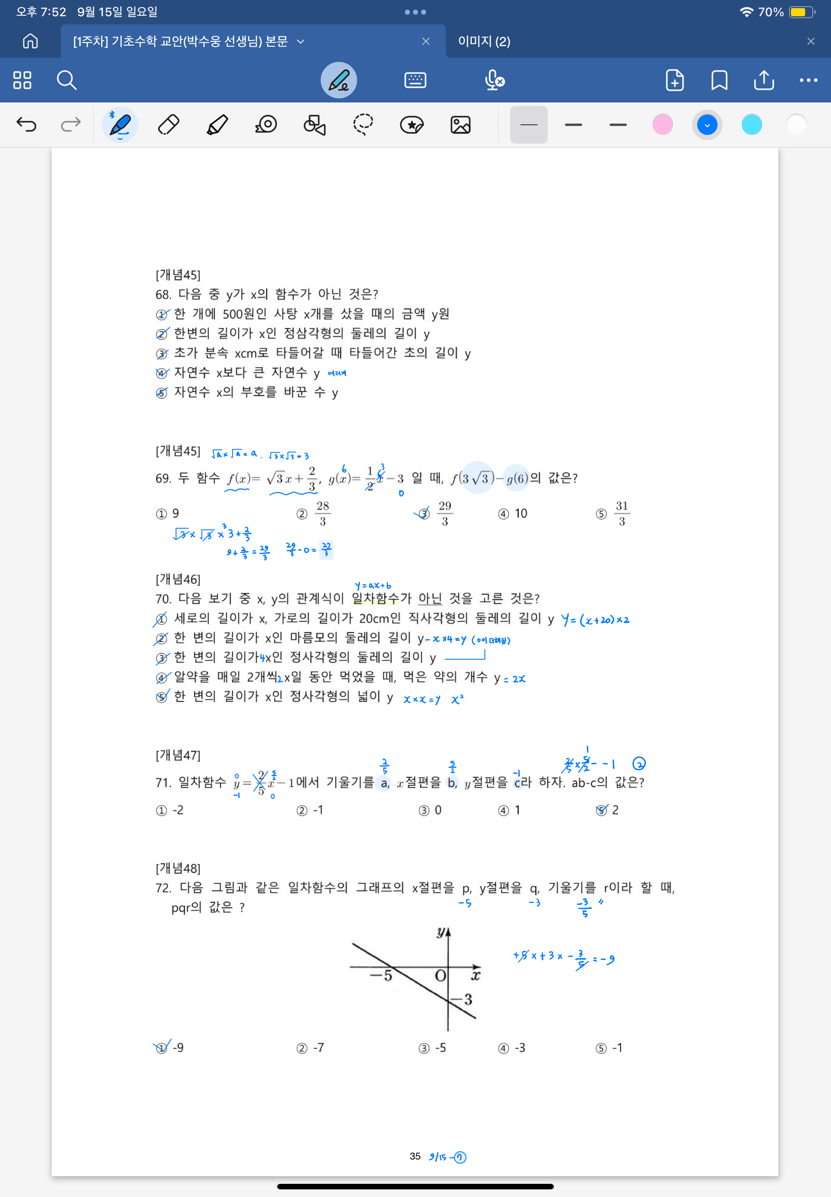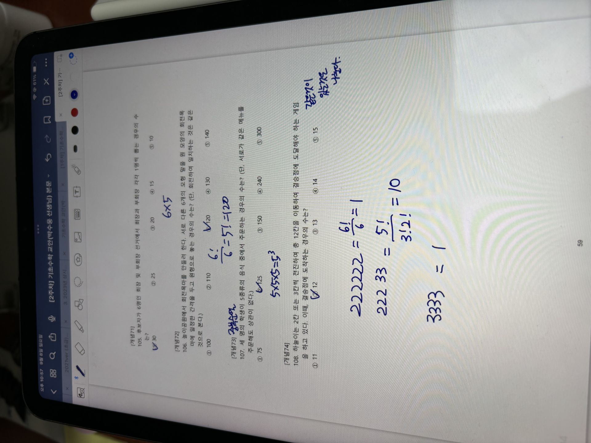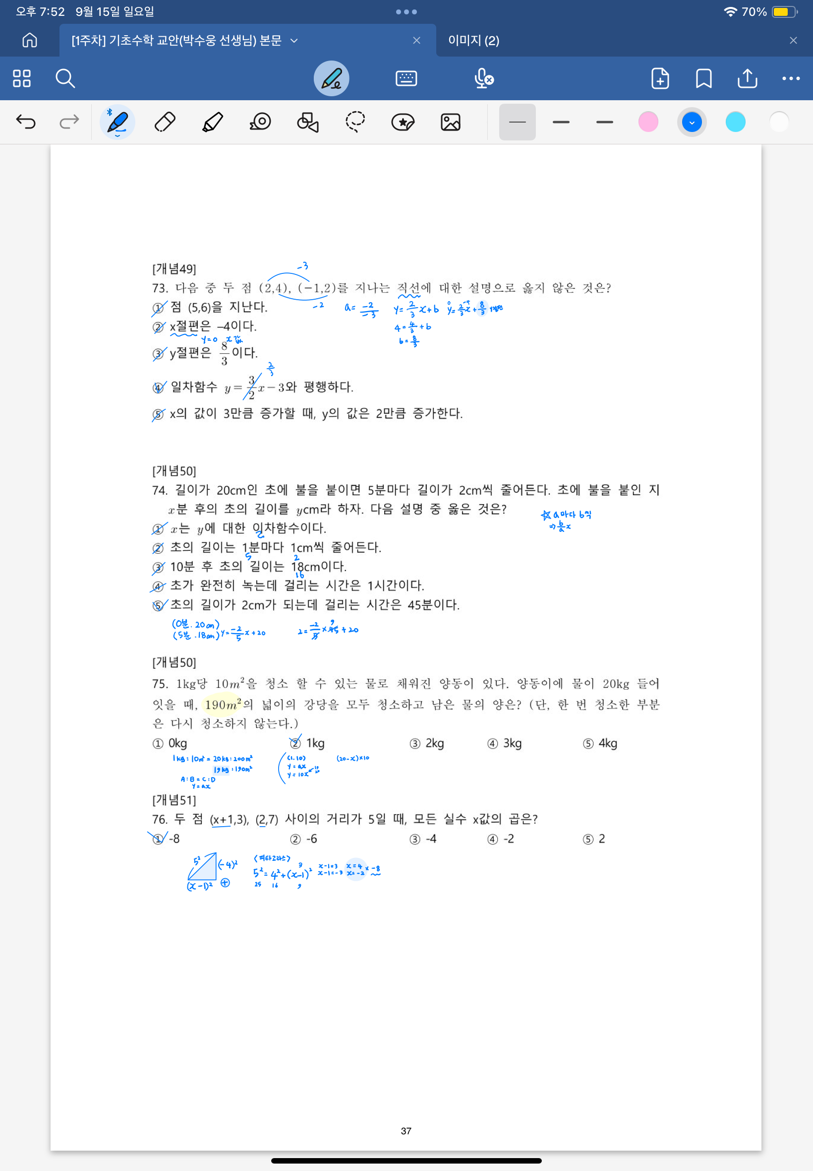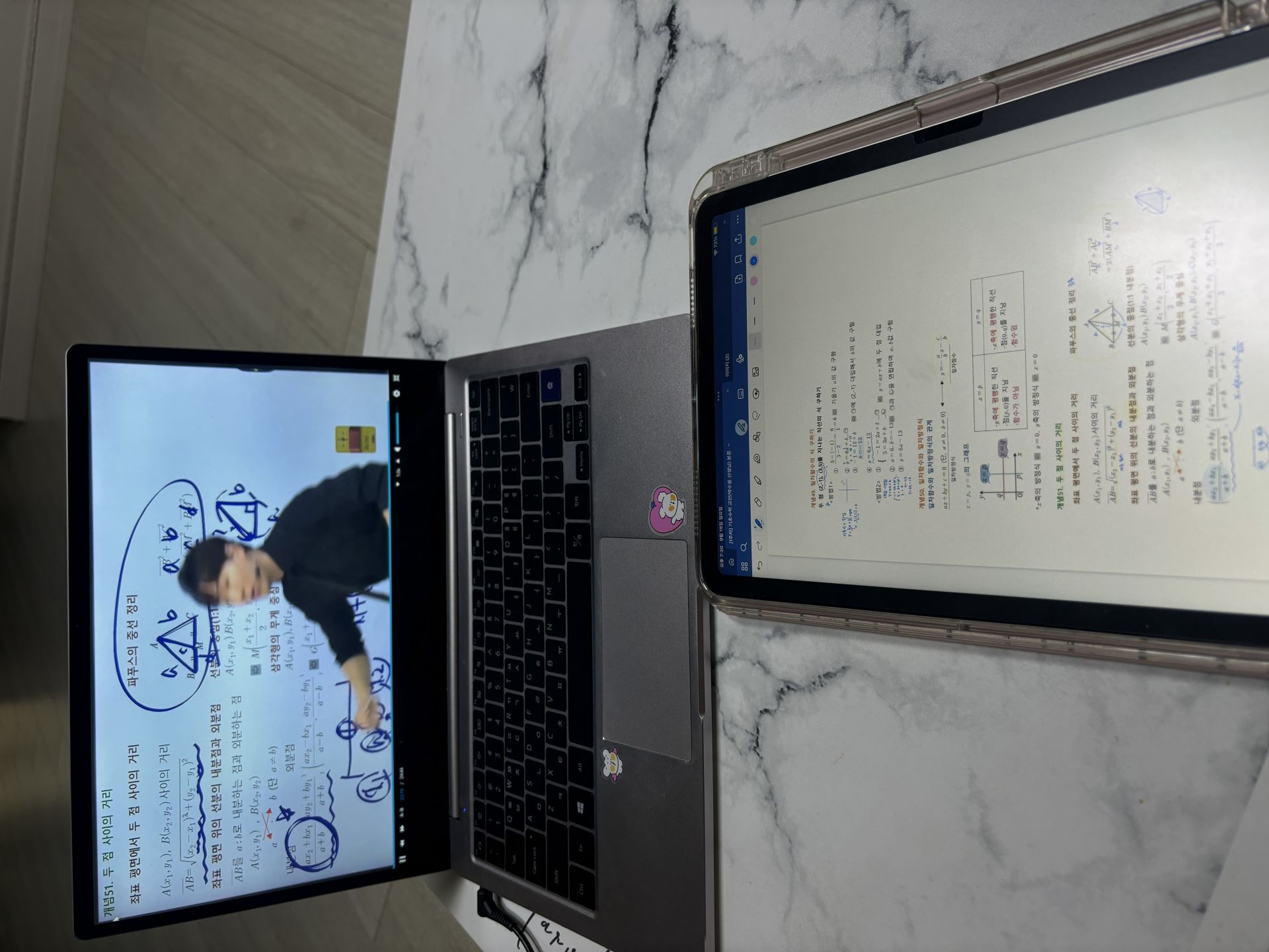 다시 풀어보라는 문제는 일시정지 하고 다시 풀어보았고 선생님 풀이법과 비교해보았습니다.