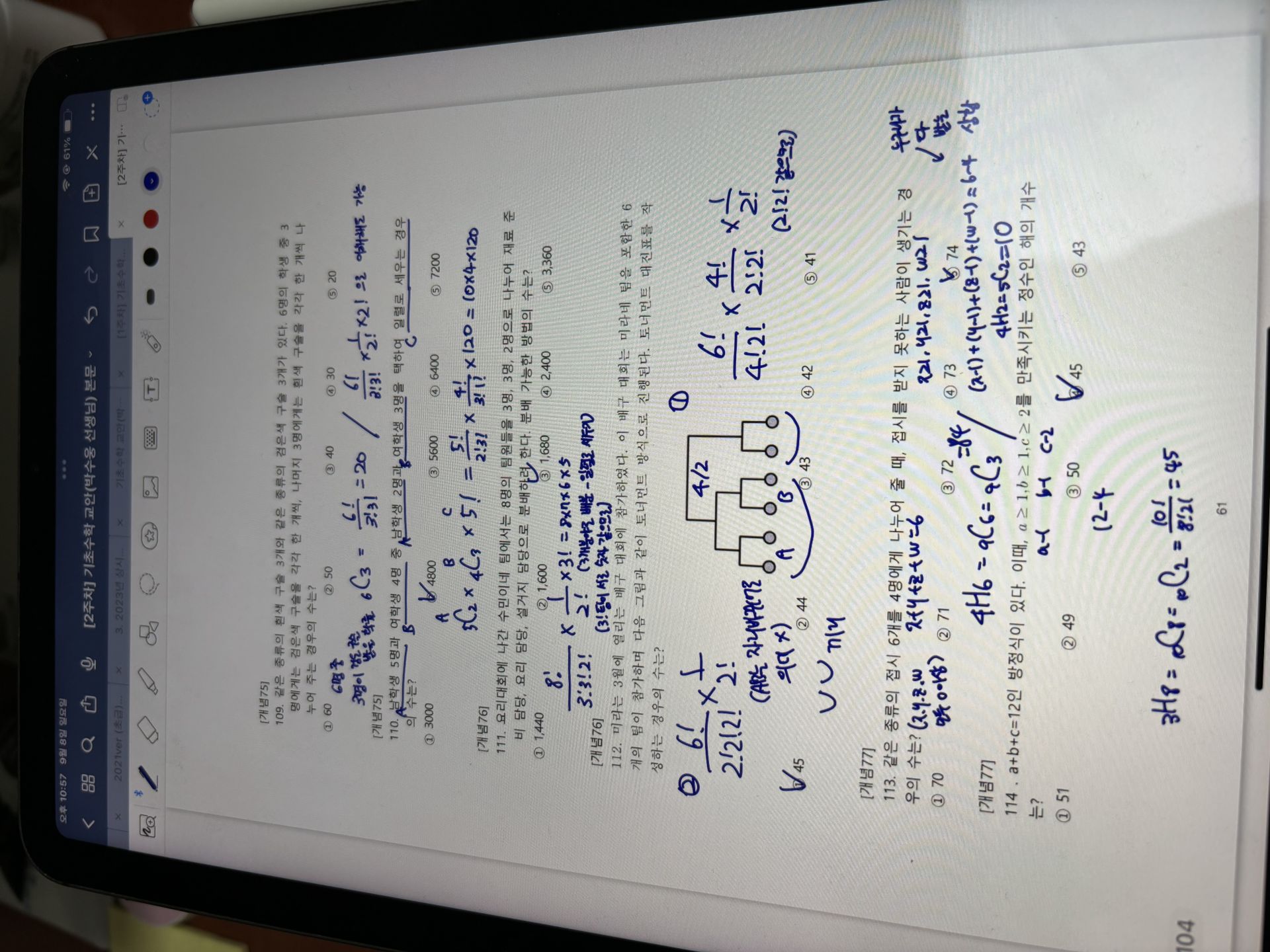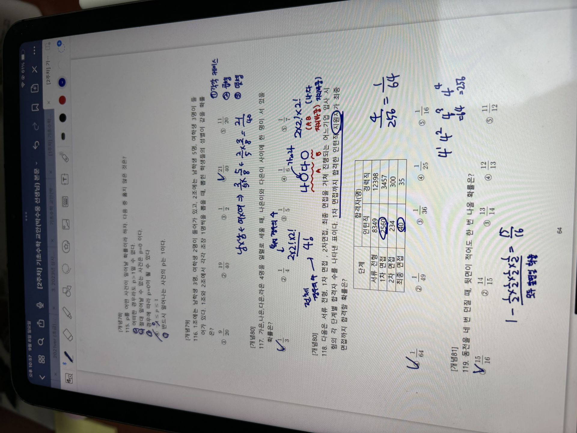 그리고 확률 파트 특히 조건부 확률 문제는 보면 바로 넘기는 문제였는데