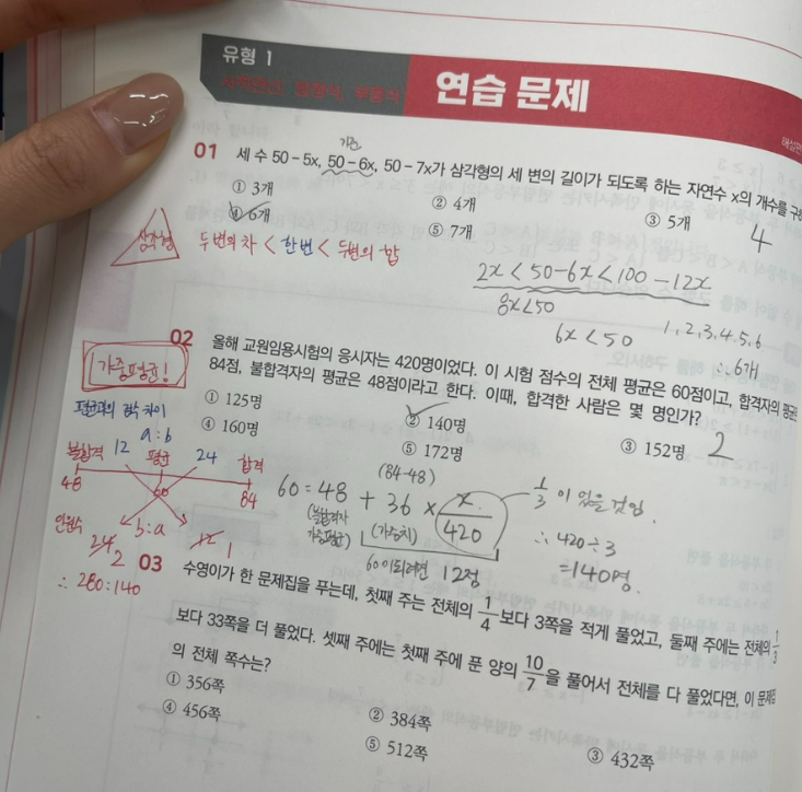 처음 시작할 때만 해도 자신만만했던 제 과거를 반성합니다…또르르.. 책을 펴자마자 마주한 응용수리와 자료해석의 당혹감은 정말 잊지 못해요ㅠㅠ 중학 수학 내용이라 쉬울 줄 알았는데 막상 풀려니 손도 못 대겠더라고요. 하지만 다행히 수웅쌤을 만나서 극복하고 있는 것 같아 기쁜 마음으로 후기작성합니다!