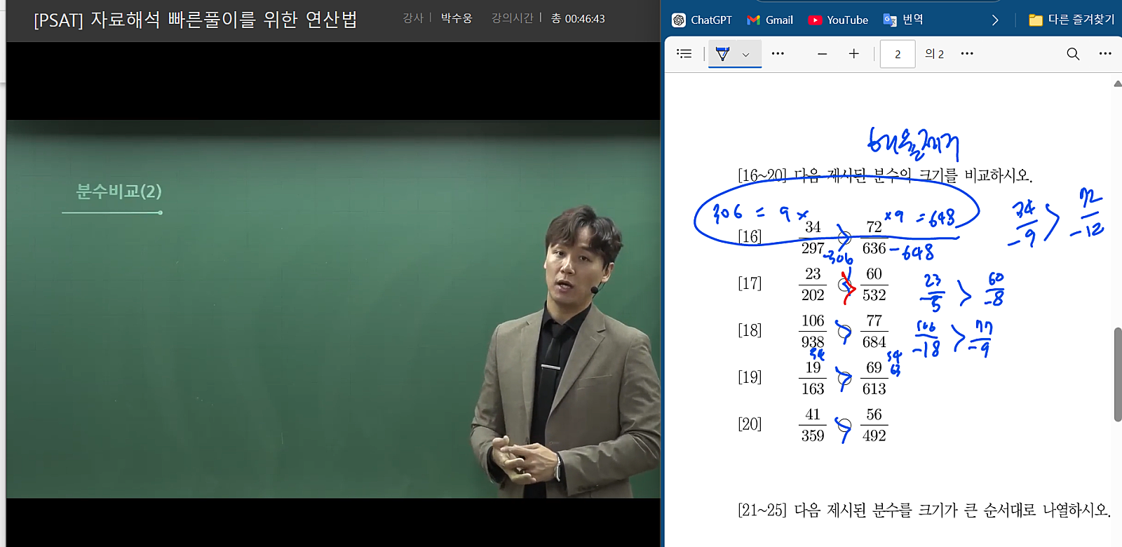 처음에는 자료해석, 응용수리 책만 샀다가 내용이 좋아서 강의를 찾아보던 차에 박수옹 선생님 계셔서 애드투 유료 강좌 구매했습니다.