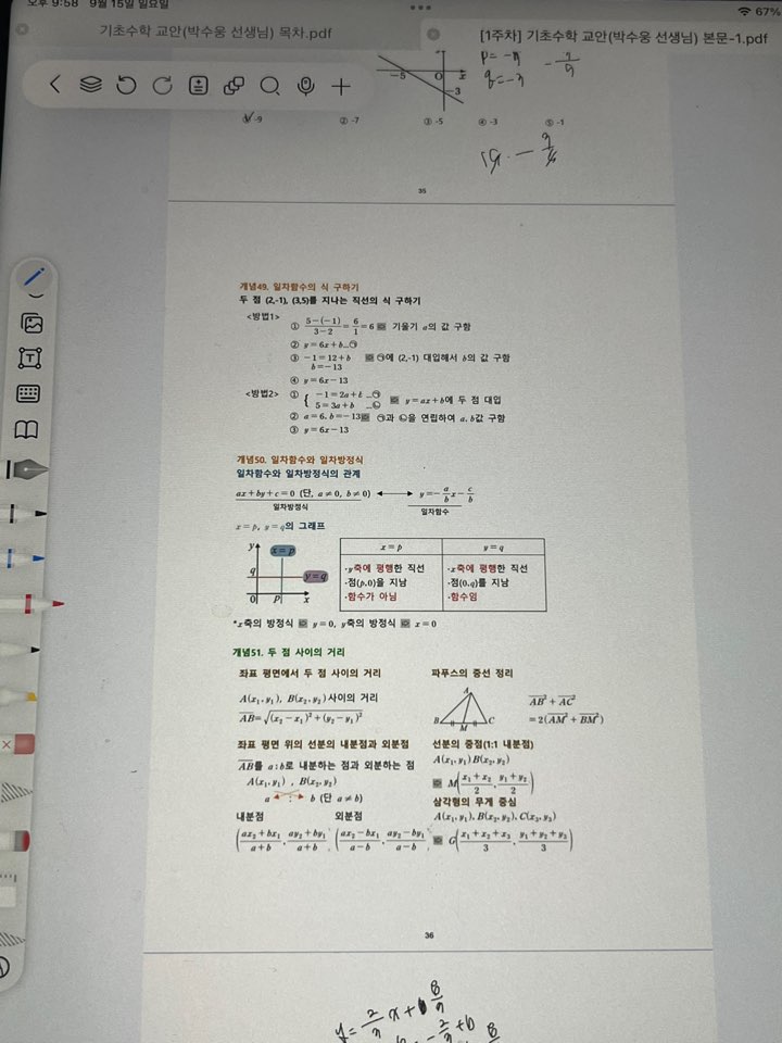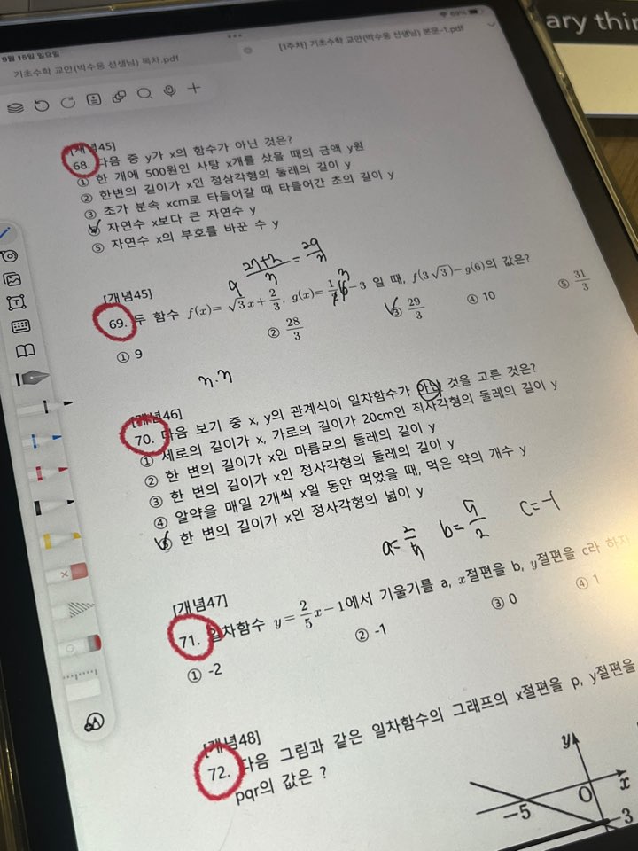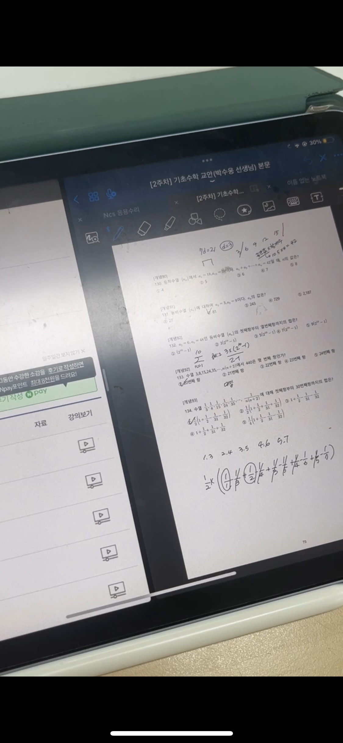 수학을 놓은지 10년이 넘어 기초 수리를 수강하게 되었습니다
