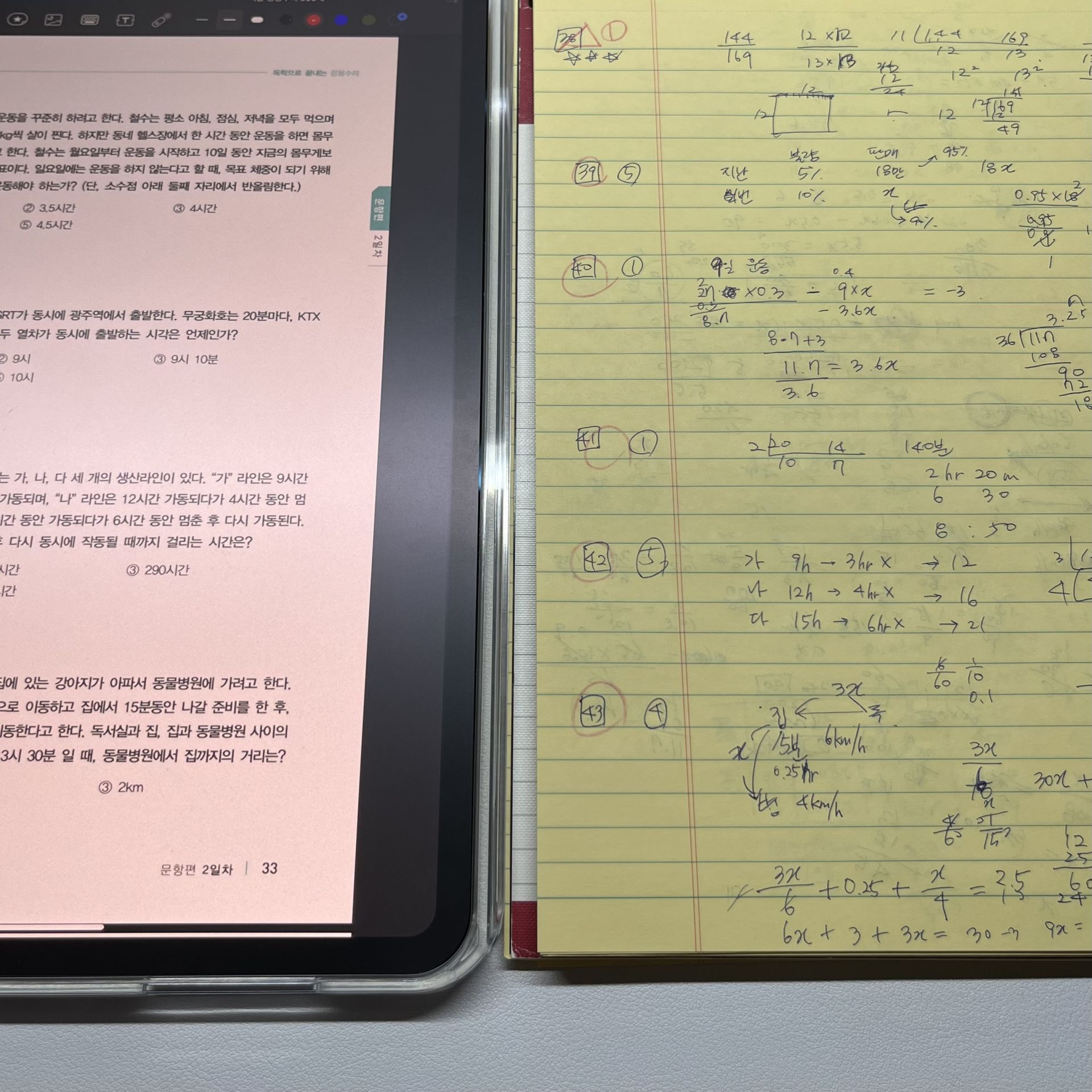 교재 구성도 실전 대비에 좋았습니다. 유형별로 포인트가 명확해서 복습할 때 “내가 어디서 막히는지” 체크가 쉽고, 강의 듣고 바로 교재로 반복하면 풀이 속도가 조금씩 올라가는 게 체감됩니다. 아직은 어렵게 느껴지는 부분도 있지만, 이번 주에 배운 유형들은 오답노트로 패턴 정리 → 같은 유형 2~3회 반복 → 시간 재면서 재풀이 방식으로 꾸준히 늘려갈 계획입니다.