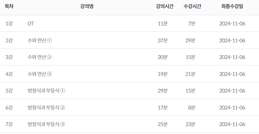 특히 저는 수리부분에 어려움을 겪어 항상 어려워하던 중에 기초수리를 다시 다져야겠다고 생각했습니다.