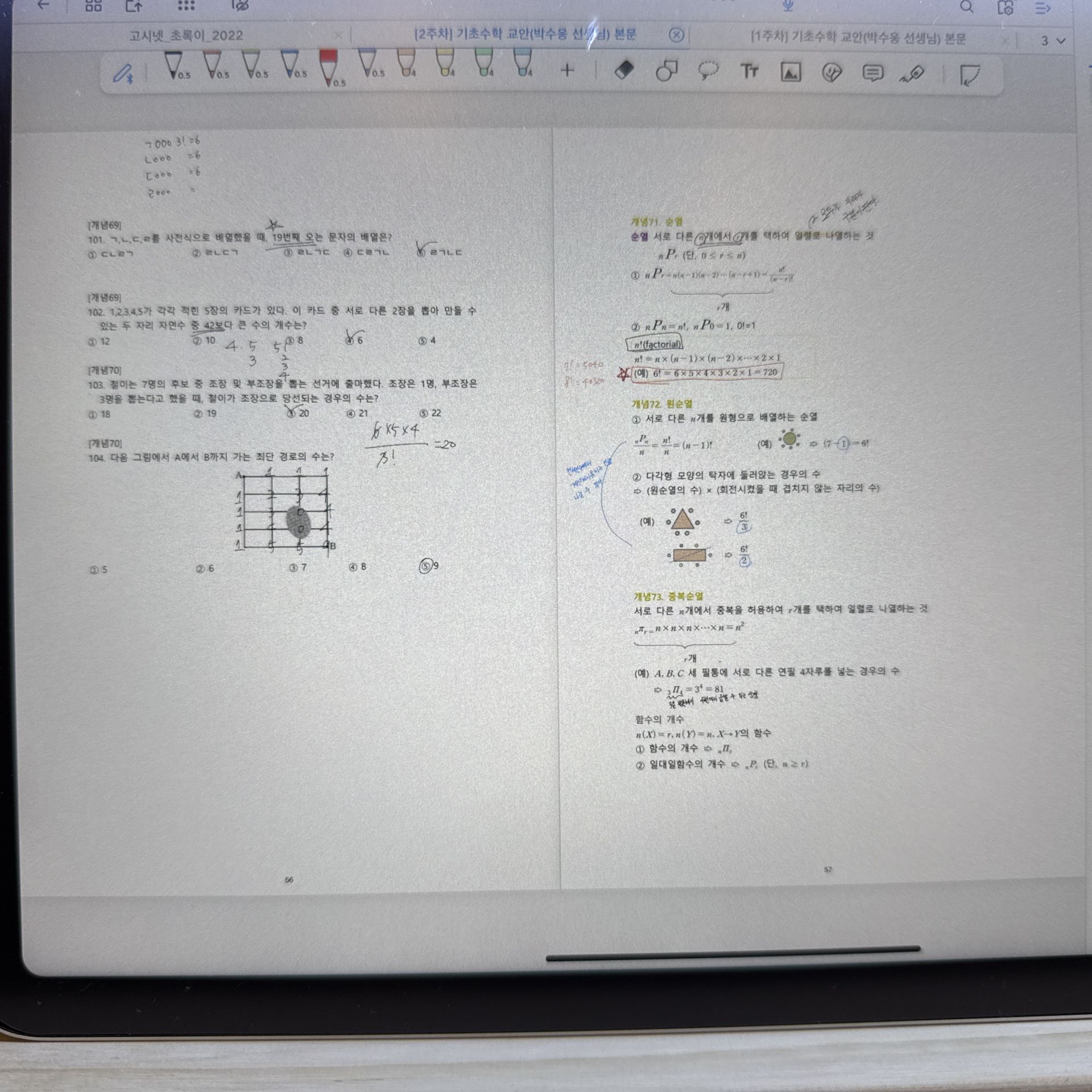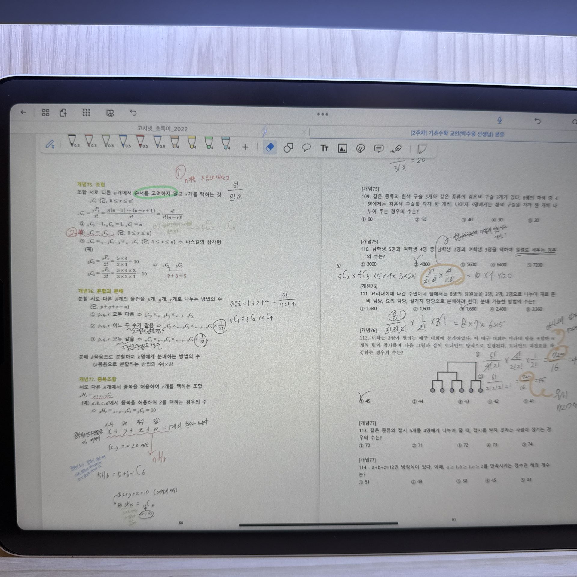 그리고 확률 파트 특히 조건부 확률 문제는 보면 바로 넘기는 문제였는데