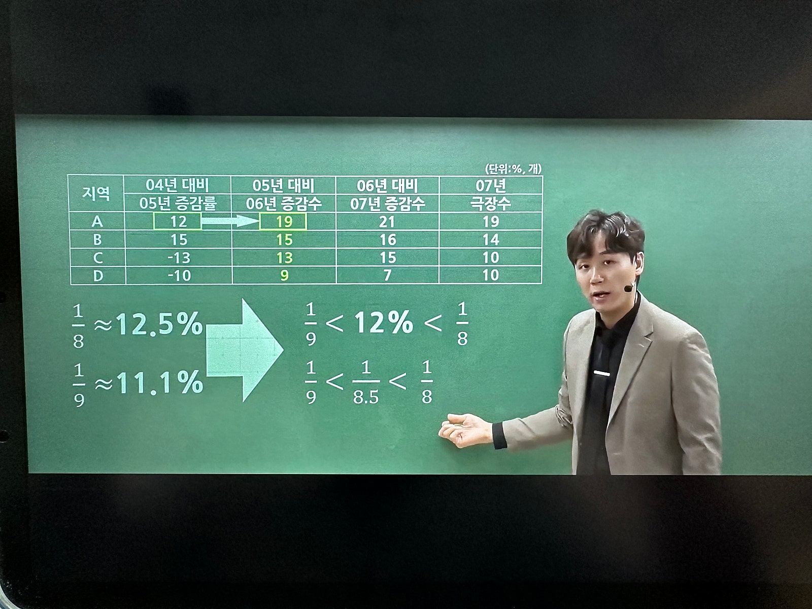 독끝 스터디 과정 2주차에는 박수웅 선생님과 '자료해석'과 '응용수리' 진도를 나갔습니다. 개인적으로 제일 취약하다고 생각하는 파트라 문제를 보기만하면 지레 겁부터 먹곤했는데, 선생님께서 알려주시는 풀이법을 하나하나씩 차근히 따라가다보니 생각보다 쉽게 풀릴 수 있다는 문제라는 점을 깨닫고 신선한 충격을 받은 적이 정말 많습니다... 괜히 명강의,명강사로 불리는 게 아니더라구요 ㅠㅠ bb