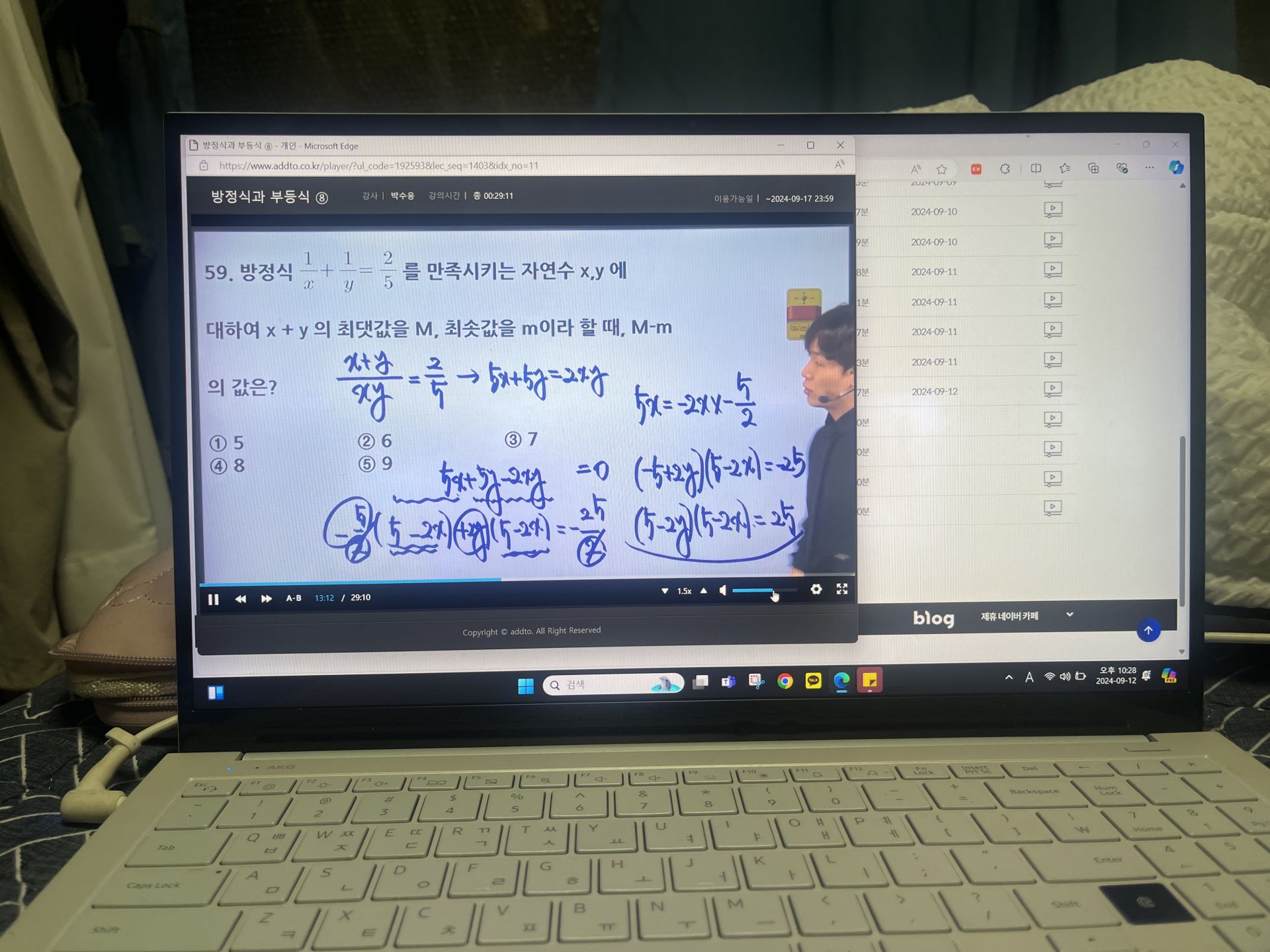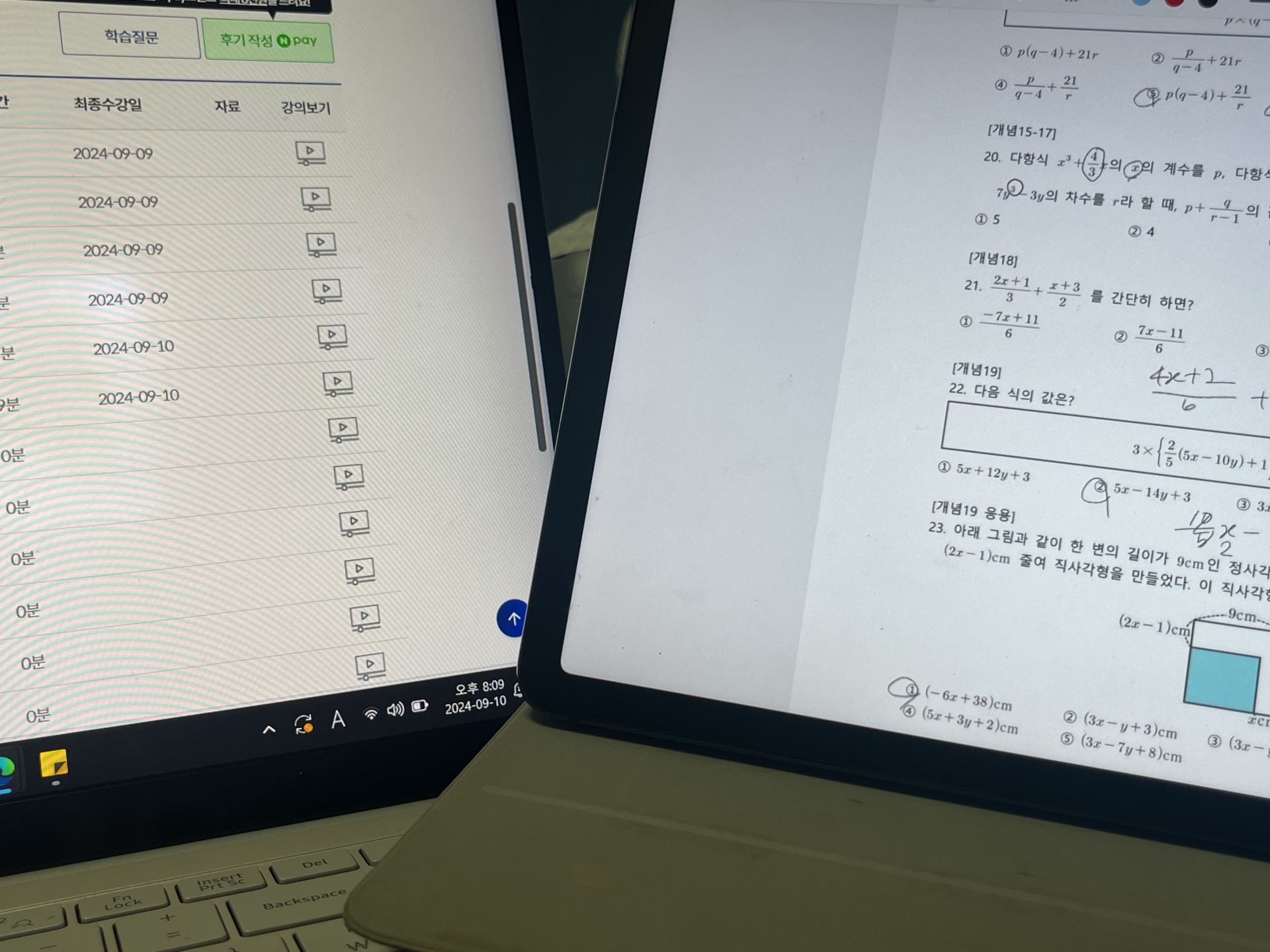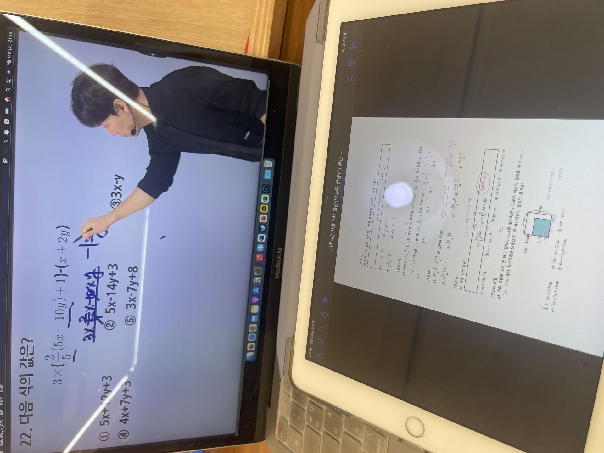 다시 풀어보라는 문제는 일시정지 하고 다시 풀어보았고 선생님 풀이법과 비교해보았습니다.