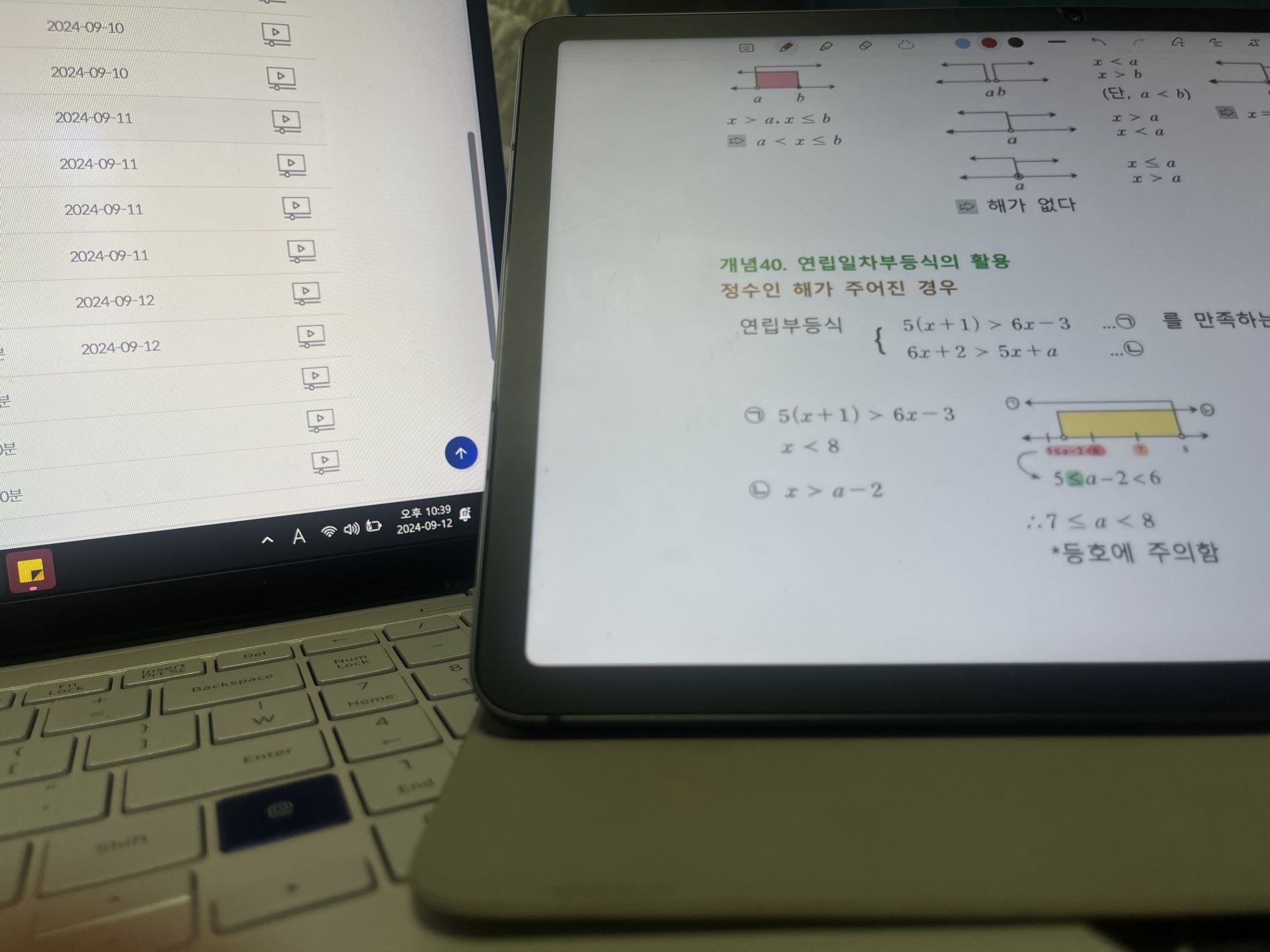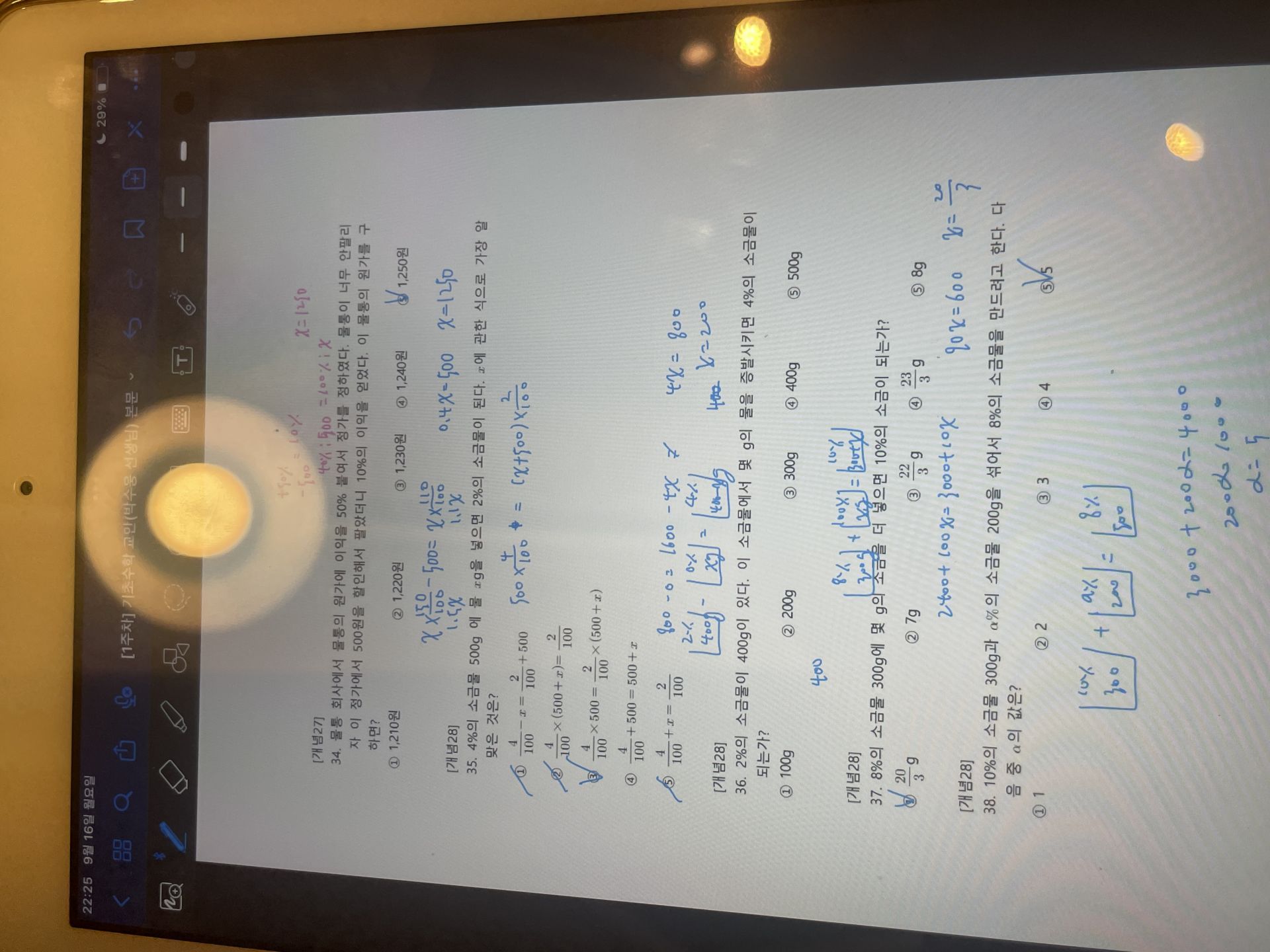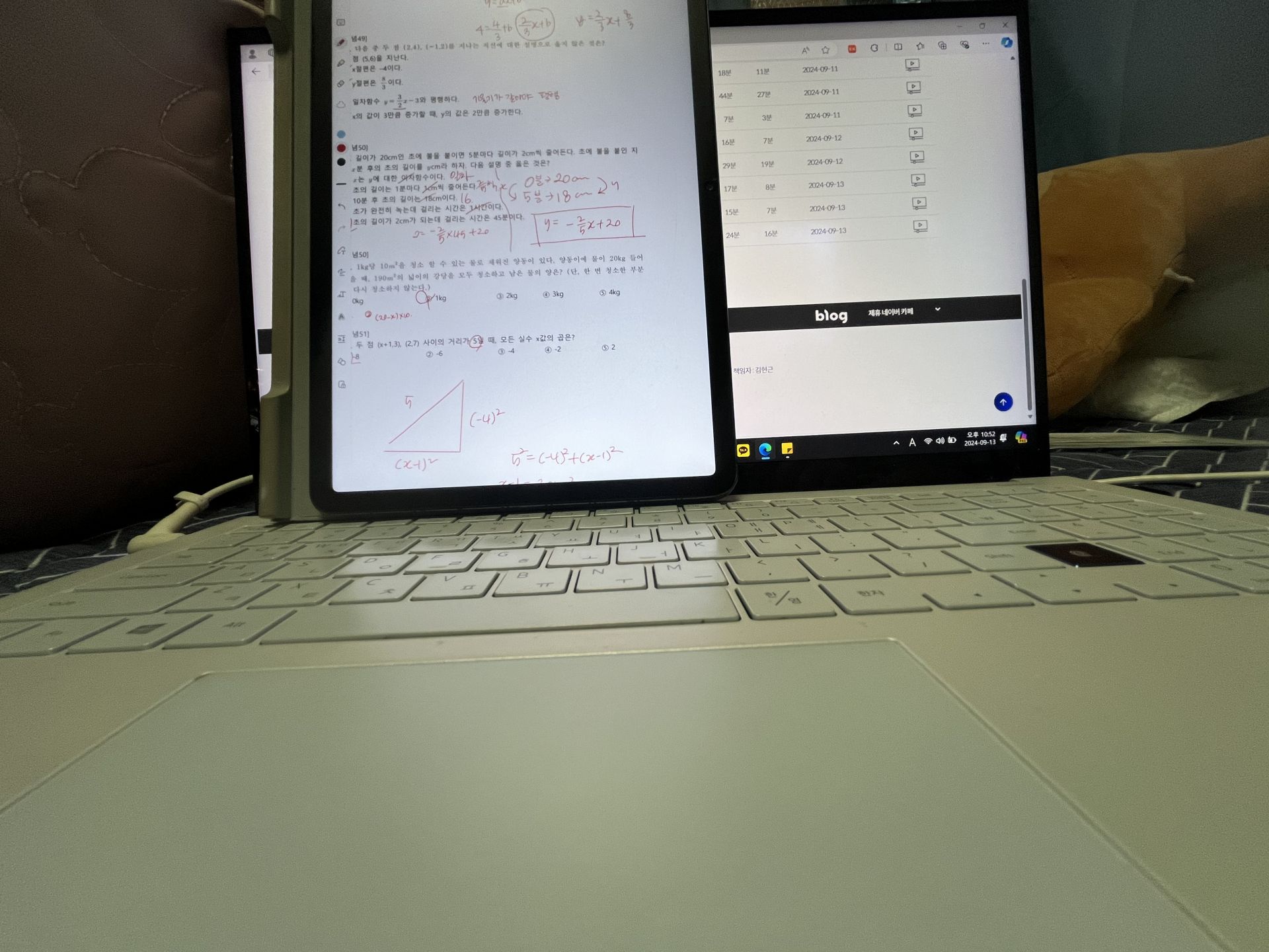 다시 풀어보라는 문제는 일시정지 하고 다시 풀어보았고 선생님 풀이법과 비교해보았습니다.