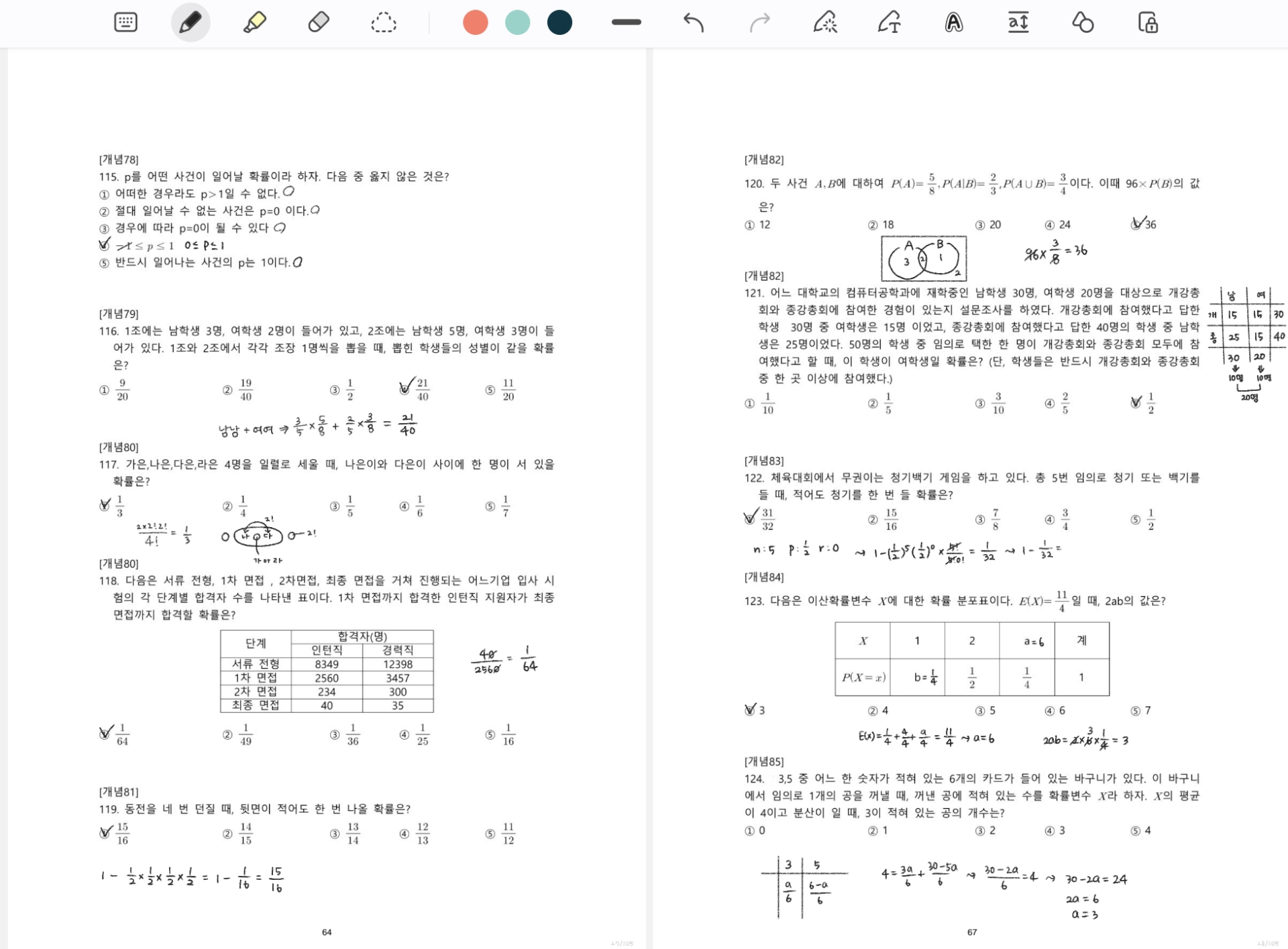그리고 확률 파트 특히 조건부 확률 문제는 보면 바로 넘기는 문제였는데