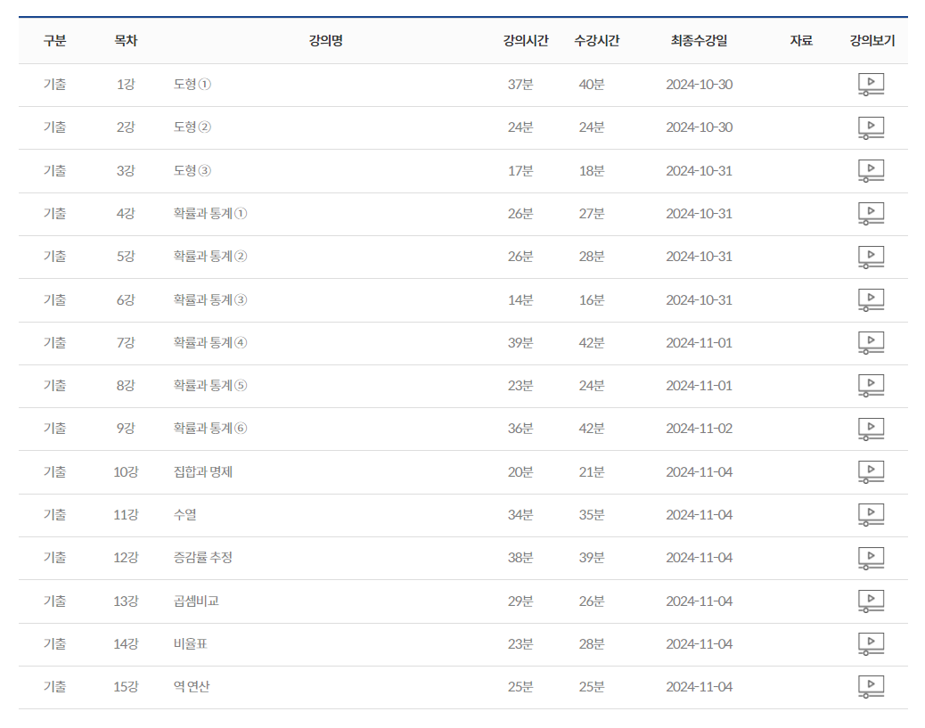 개념강의를 챕터별로 수강하면서 잊고 있건 개념들을 다시 익히고 문제를 풀면서 수리영역에 대한 자신감을 조금씩 얻게 되었습니다.