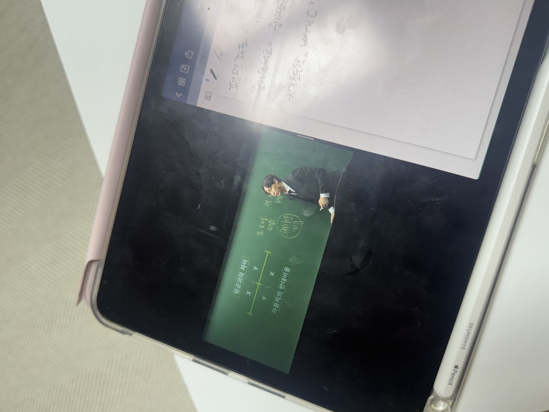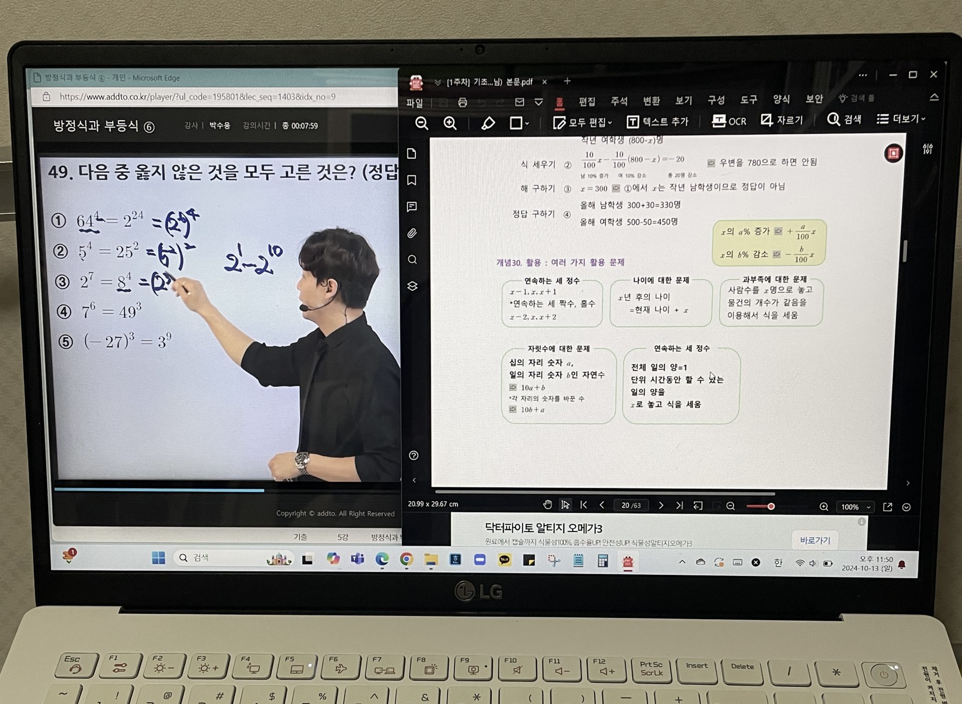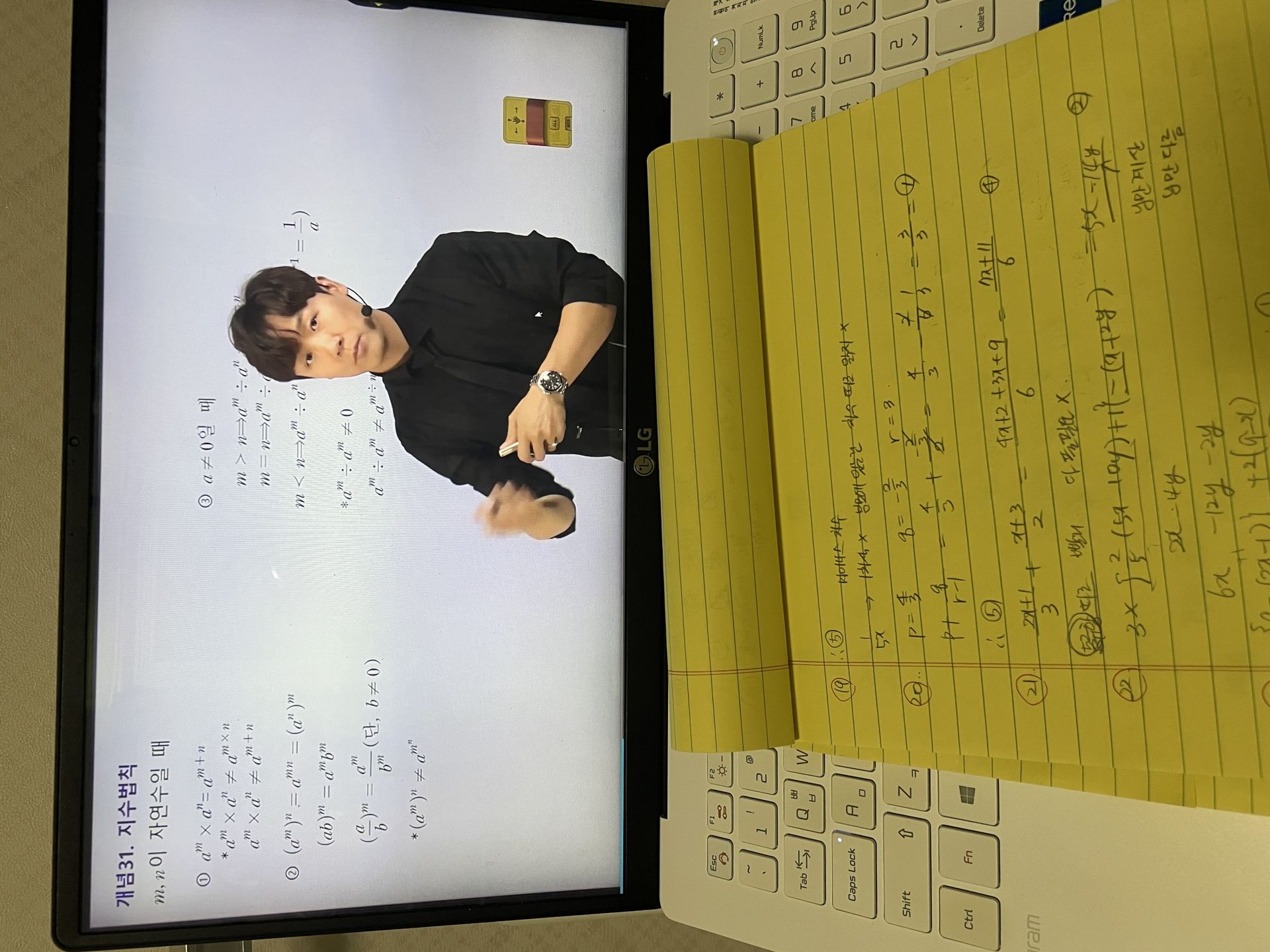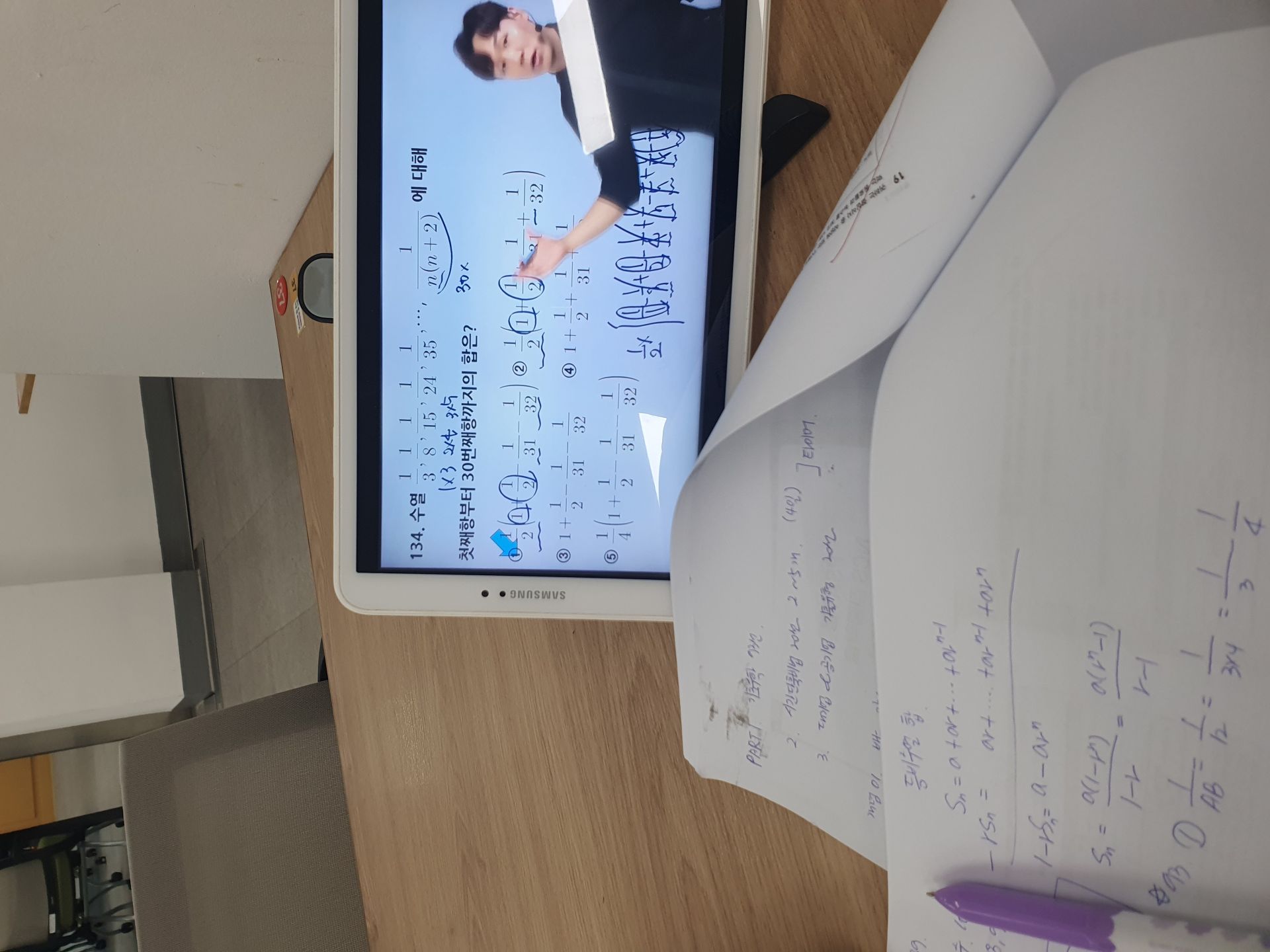 다시 풀어보라는 문제는 일시정지 하고 다시 풀어보았고 선생님 풀이법과 비교해보았습니다.