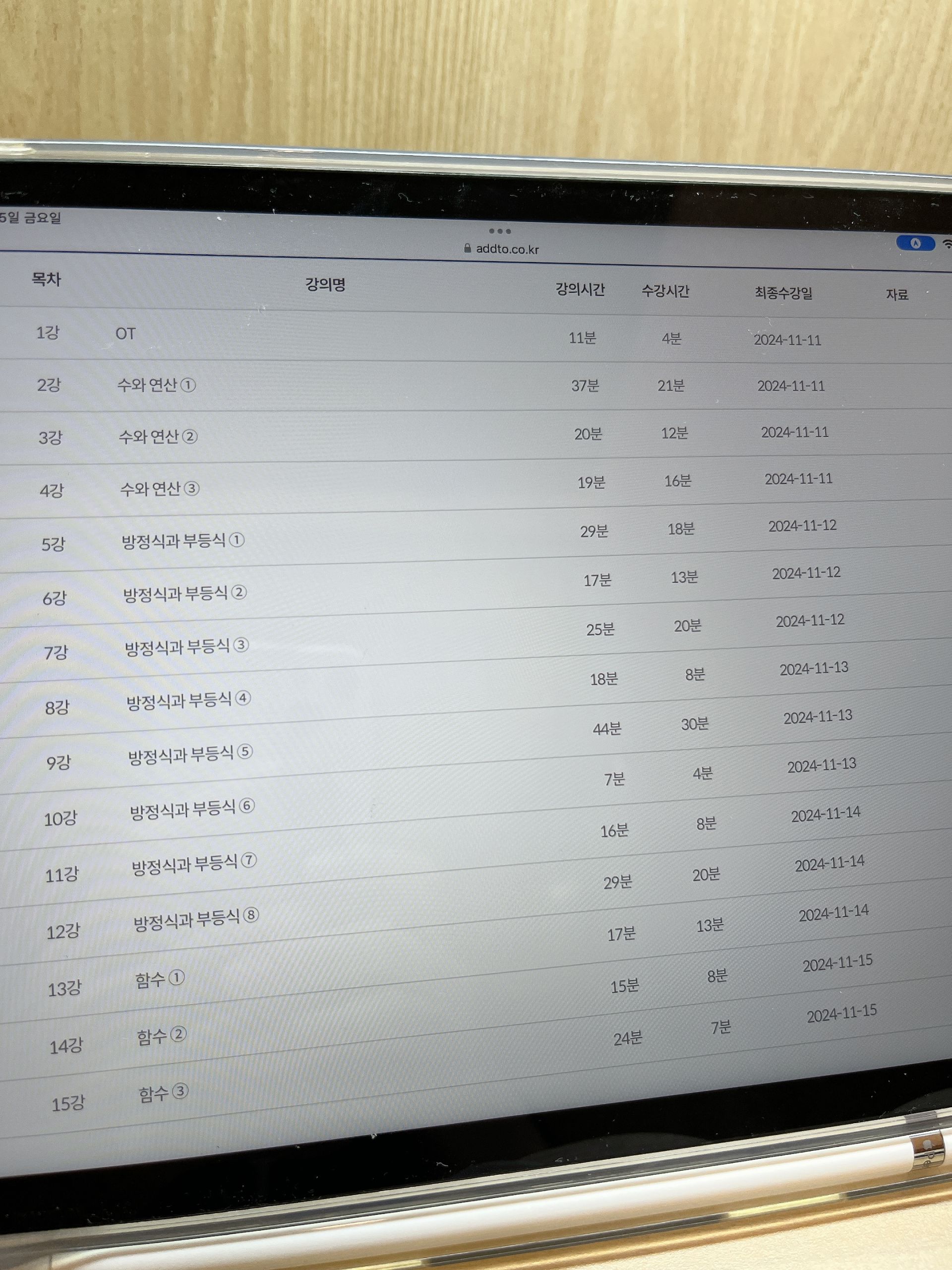 물론 강의를 듣는 것만으로 끝나는 것이 아니라 복습과 기본 공식·개념 암기는 스스로 꾸준히 해야 한다는 점도 다시 한번 느꼈습니다. 강의가 방향을 잡아주는 역할이라면, 반복 연습은 결국 제 몫이라는 생각으로 복습 루틴도 함께 만들고 있습니다.