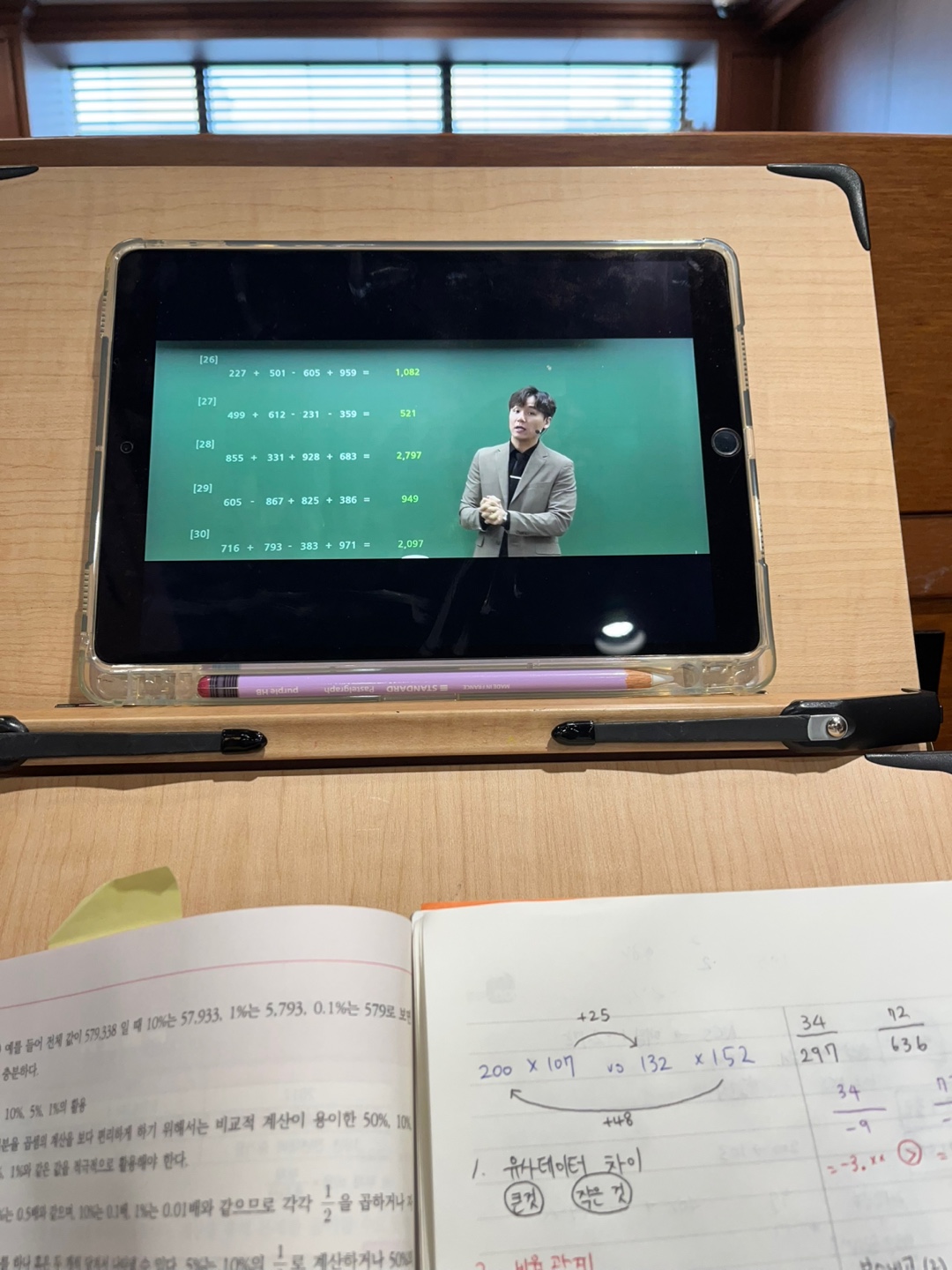 교재 구성도 실전 대비에 좋았습니다. 유형별로 포인트가 명확해서 복습할 때 “내가 어디서 막히는지” 체크가 쉽고, 강의 듣고 바로 교재로 반복하면 풀이 속도가 조금씩 올라가는 게 체감됩니다. 아직은 어렵게 느껴지는 부분도 있지만, 이번 주에 배운 유형들은 오답노트로 패턴 정리 → 같은 유형 2~3회 반복 → 시간 재면서 재풀이 방식으로 꾸준히 늘려갈 계획입니다.
