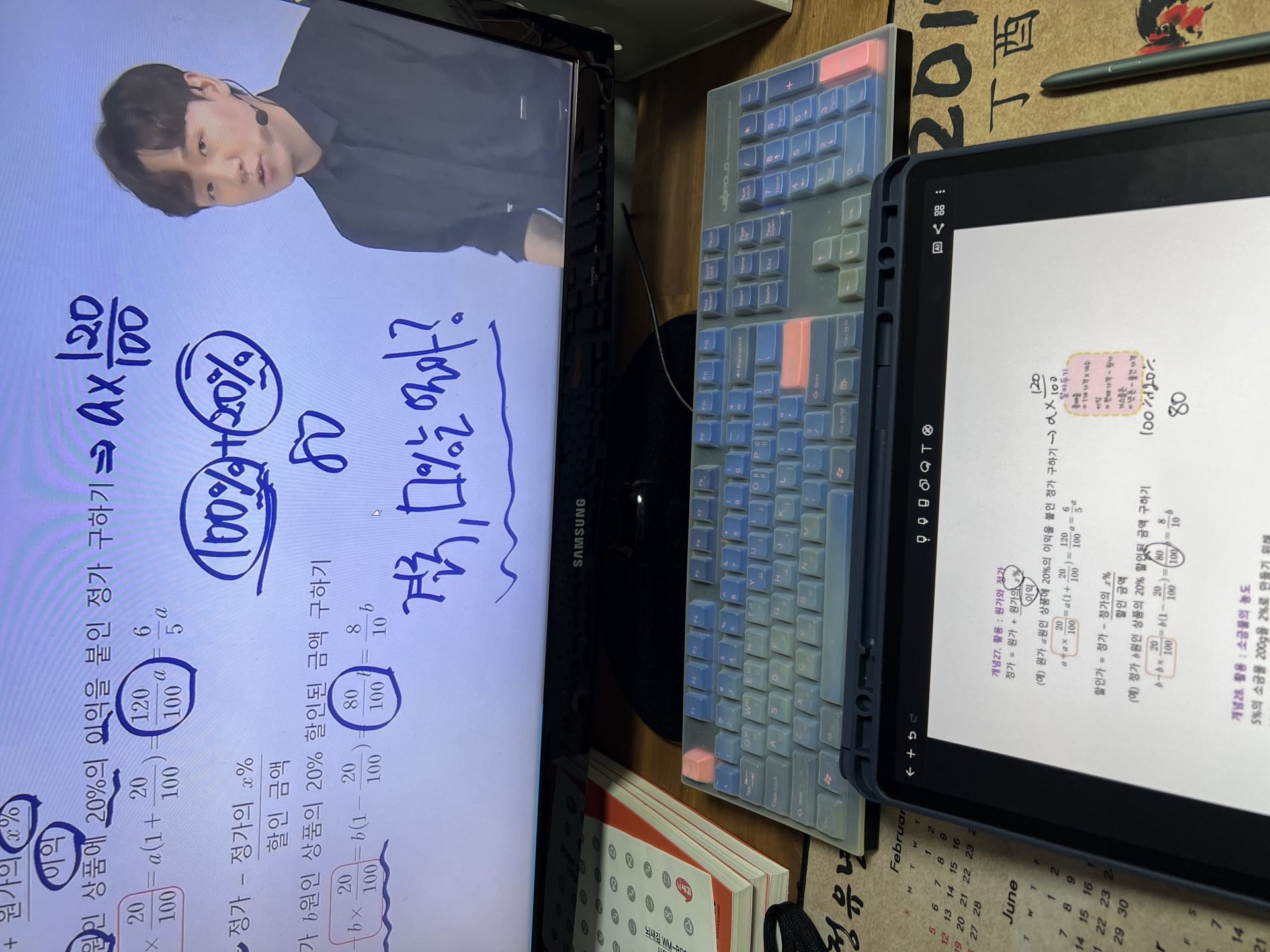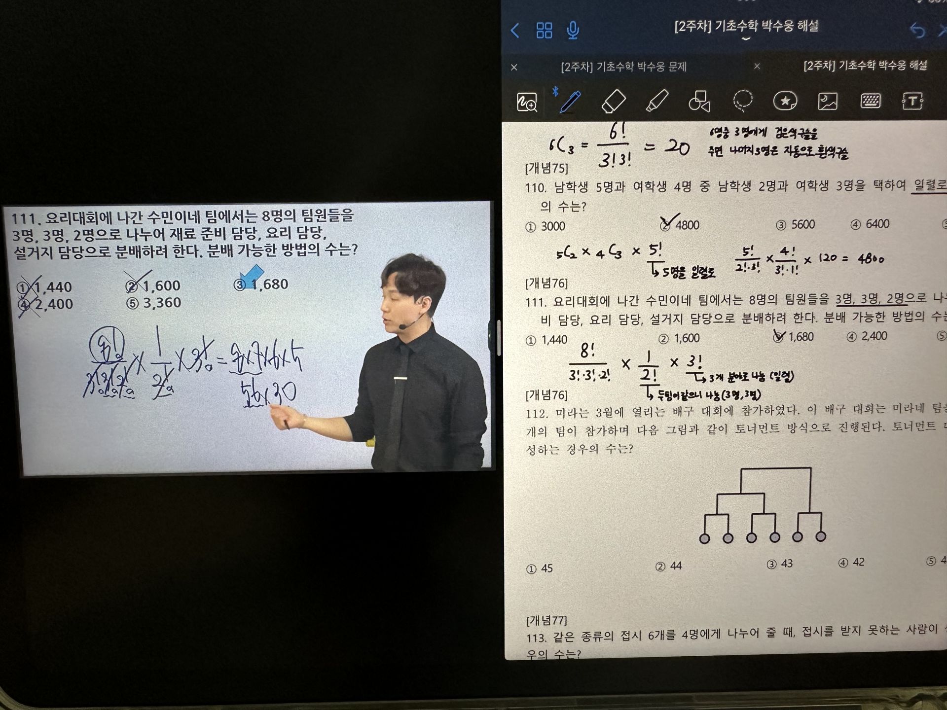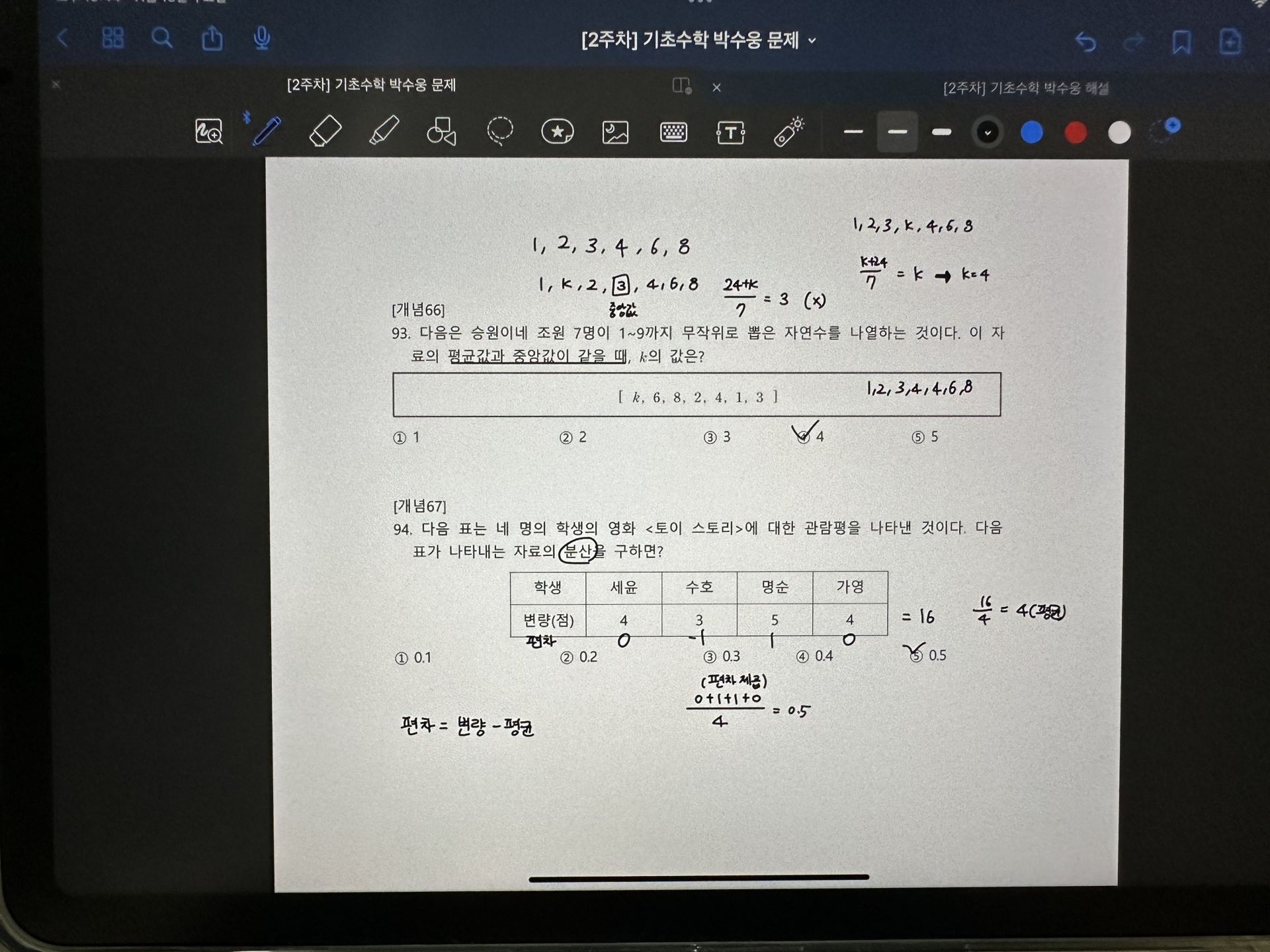 다시 풀어보라는 문제는 일시정지 하고 다시 풀어보았고 선생님 풀이법과 비교해보았습니다.