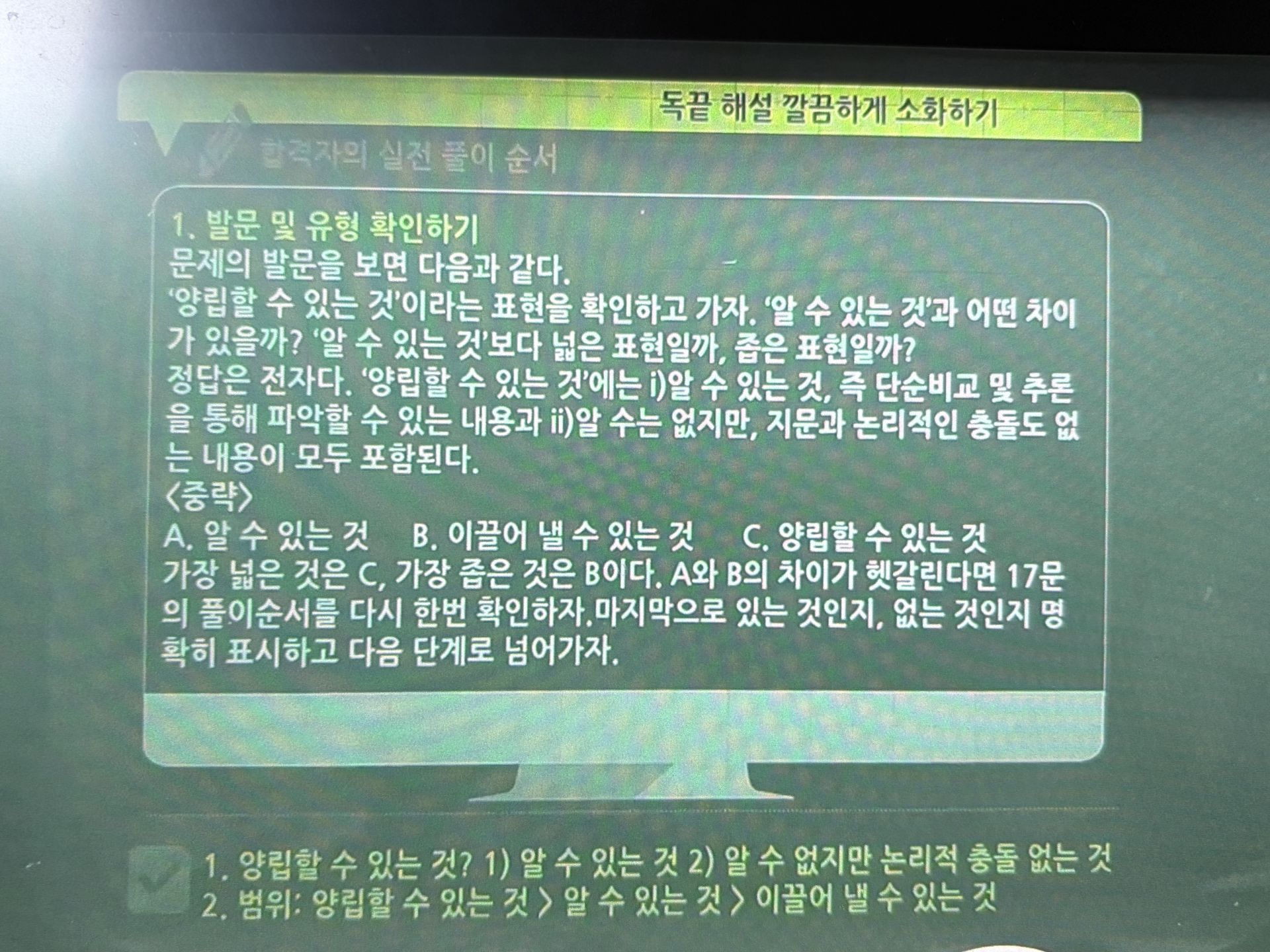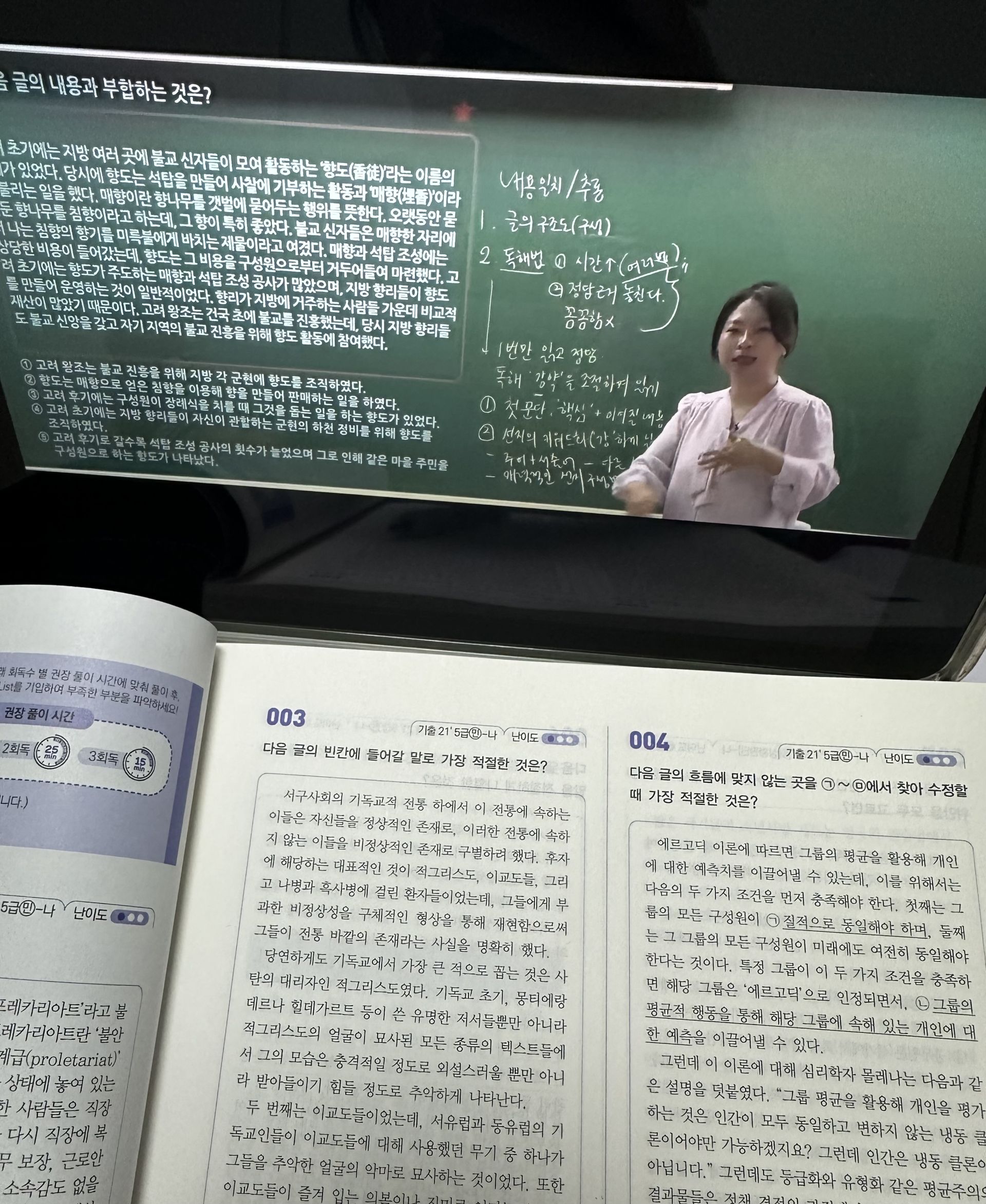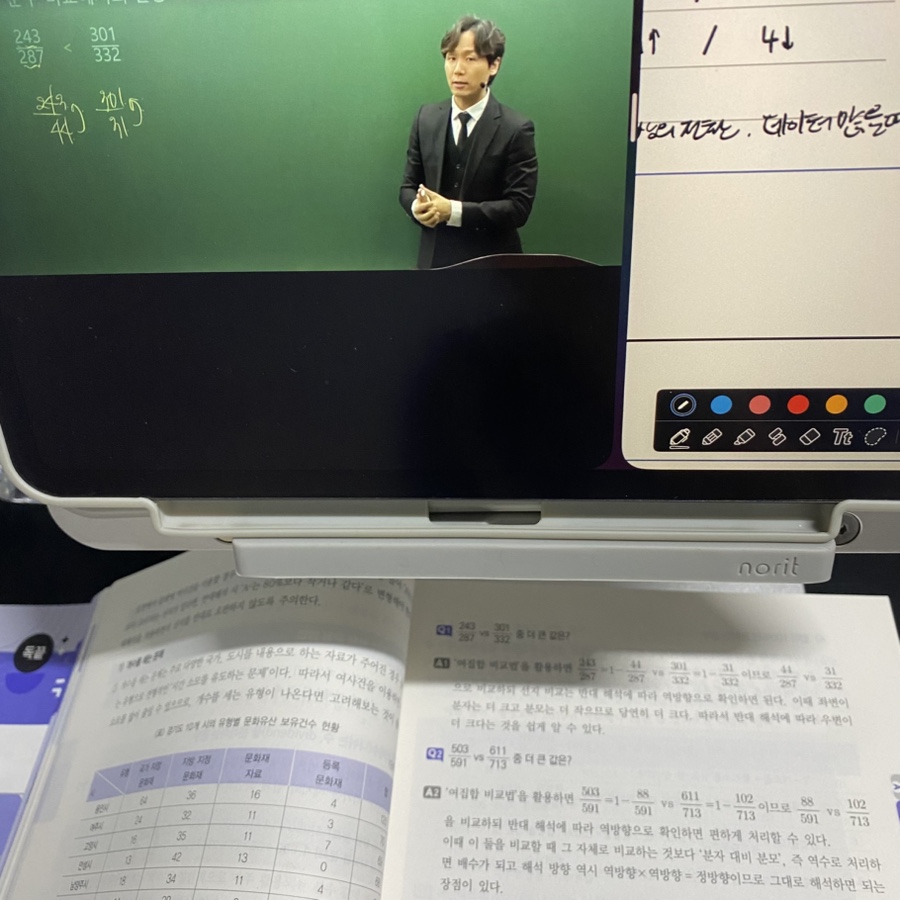 교재 구성도 실전 대비에 좋았습니다. 유형별로 포인트가 명확해서 복습할 때 “내가 어디서 막히는지” 체크가 쉽고, 강의 듣고 바로 교재로 반복하면 풀이 속도가 조금씩 올라가는 게 체감됩니다. 아직은 어렵게 느껴지는 부분도 있지만, 이번 주에 배운 유형들은 오답노트로 패턴 정리 → 같은 유형 2~3회 반복 → 시간 재면서 재풀이 방식으로 꾸준히 늘려갈 계획입니다.
