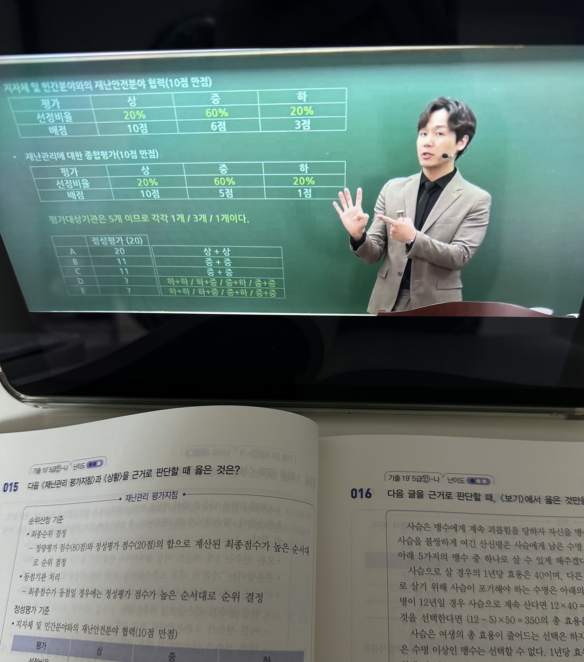 의사소통능력 영역 역시 처음에는 글을 잘 읽는 사람만 잘 풀 수 있는거 아닌가 했는데 문제유형별 문제 푸는 방법을 알려주신 덕에 아 나도 이렇게 풀면 되는구나 생각이 들었습니다. 또한 꾸준히 학습하자는 마음으로 다른 교재도 병행한 결과 접근 속도가 조금씩 빨라지는 것을 체감할 수 있었습니다.