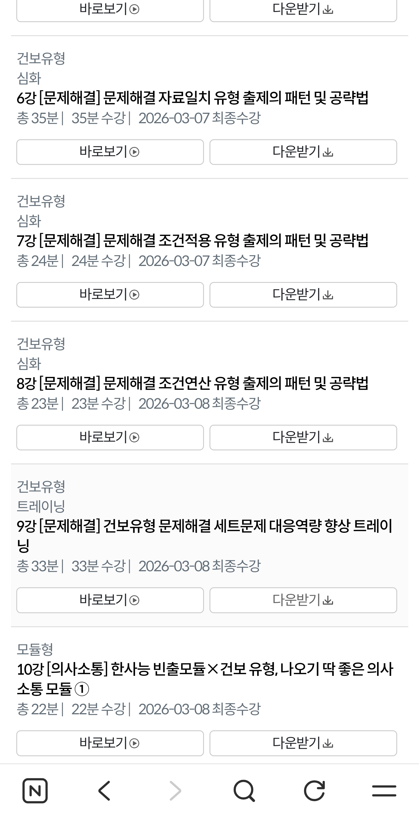 건보 합격을 향한 마지막 관문에서 점수가 정체되어 막막함을 느끼고 계신 분들이라면, 실전 감각과 풀이 속도를 동시에 극대화할 수 있는 이 강의를 적극 추천합니다! 남은 기간 배운 내용을 바탕으로 열심히 준비해서 꼭 좋은 결과 얻겠습니다.