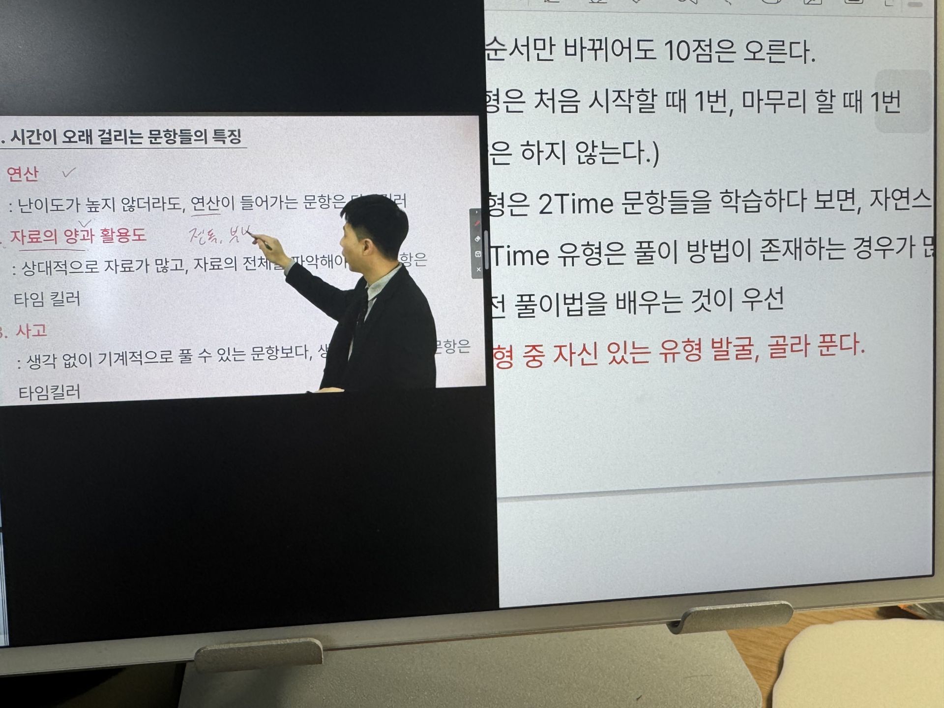 문제 풀이 과정에서 단순히 정답만을 설명해 주시는 것이 아니라 접근 방법과 풀이 전략을 함께 알려주셔서 이해하는 데 도움이 되었습니다. 특히 자료해석이나 수리 영역에서 시간을 줄이는 팁을 배울 수 있어 실전 대비에 유익했습니다.