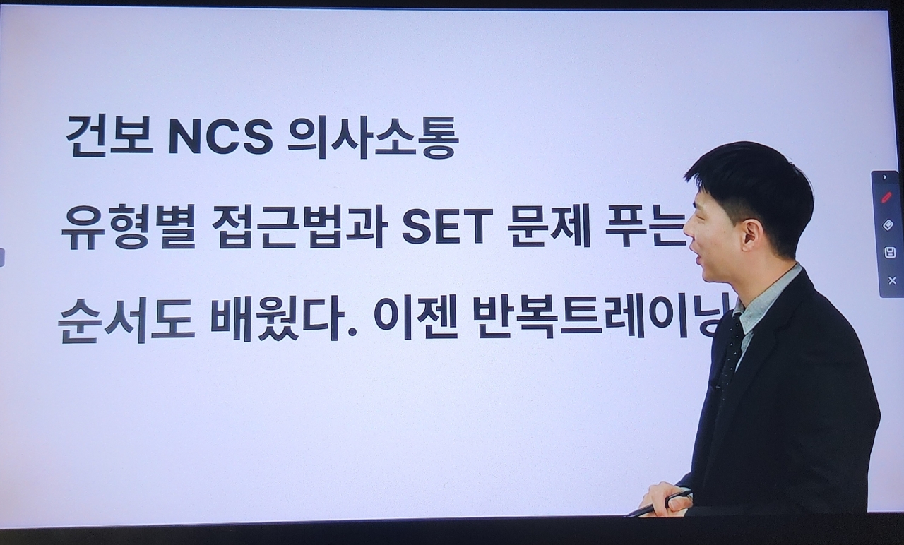 이 강의를 통해 건보 필기 준비 방향을 조금 더 명확하게 잡을 수 있었습니다. 문제를 많이 푸는 것도 중요하지만, 한정된 시간 내 쉬운 문제를 골라푸는 것이 더 중요하다는 점을 느낄 수 있었습니다. 특히 건보 25 하반기 시험을 보면서 부담이 컸던 의사소통에 대해 유형별 접근법과 SET 문제 푸는 방법, 한사능 대비해서 빈출 모듈들에 대해 체계적으로 배울 수 있어 도움이 되었습니다. 남은 기간 동안 강의 내용을 반복해서 복습하고 문제 풀이 연습을 꾸준히 이어가면서 건보 NCS 실전 감각을 더 키워나가고 싶습니다.