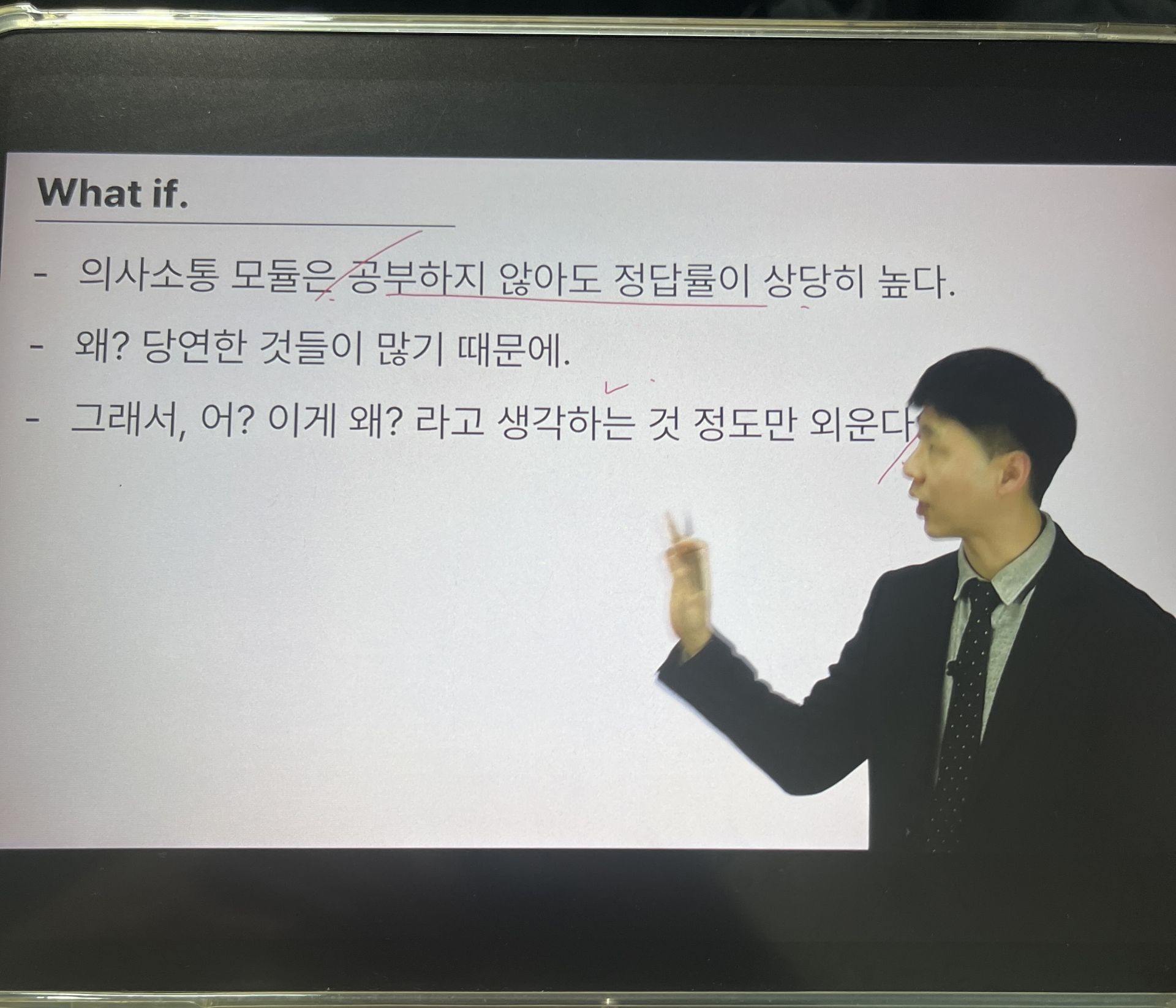 특히 출제 대행사 변경이라는 혼란스러운 상황 속에서도 오리엔테이션 강의를 통해 전문가의 시선으로 변화된 경향과 대비법을 명쾌하게 짚어주시는 모습에서 깊은 신뢰를 느꼈습니다. 이번 2주차 과정을 통해 얻은 가장 큰 수확은 제 잘못된 접근 방식을 교정하고 점검하며 유형별 올바른 전략과 접근 방법을 세울 수 있었다는 것이었습니다.