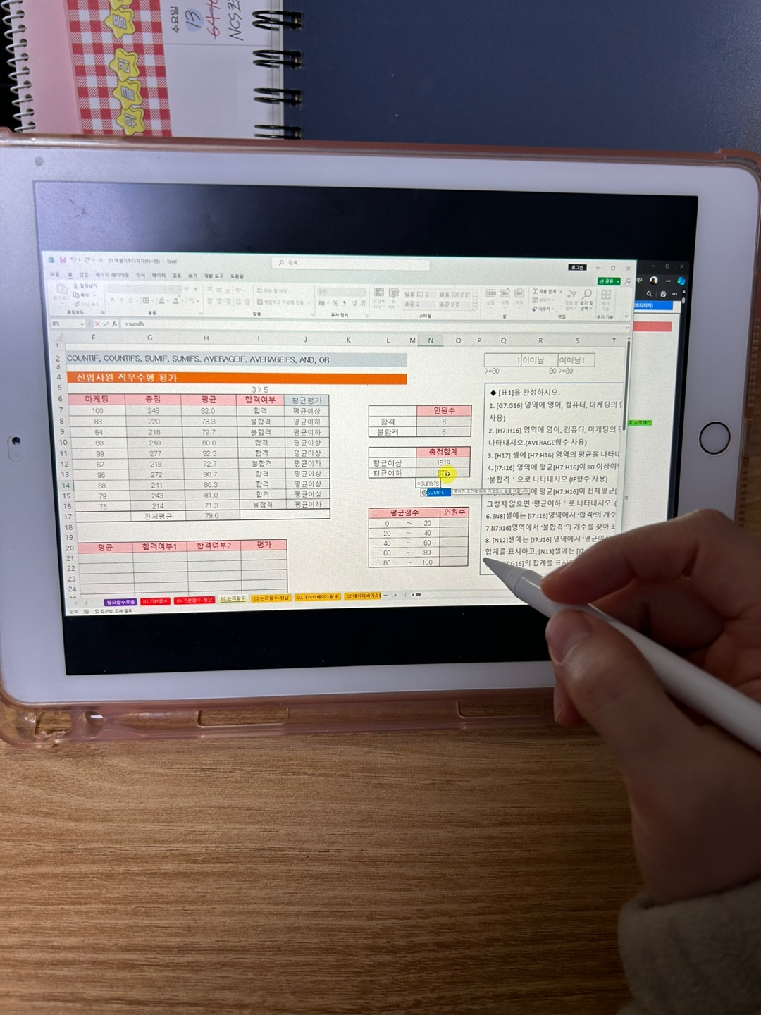 확실히 실기 문제를 먼저 풀어보고 필기를 시작하니까 엑셀 이해도가 올라갔고 워크시트 관련 문제는 쉬웠던거같아요.