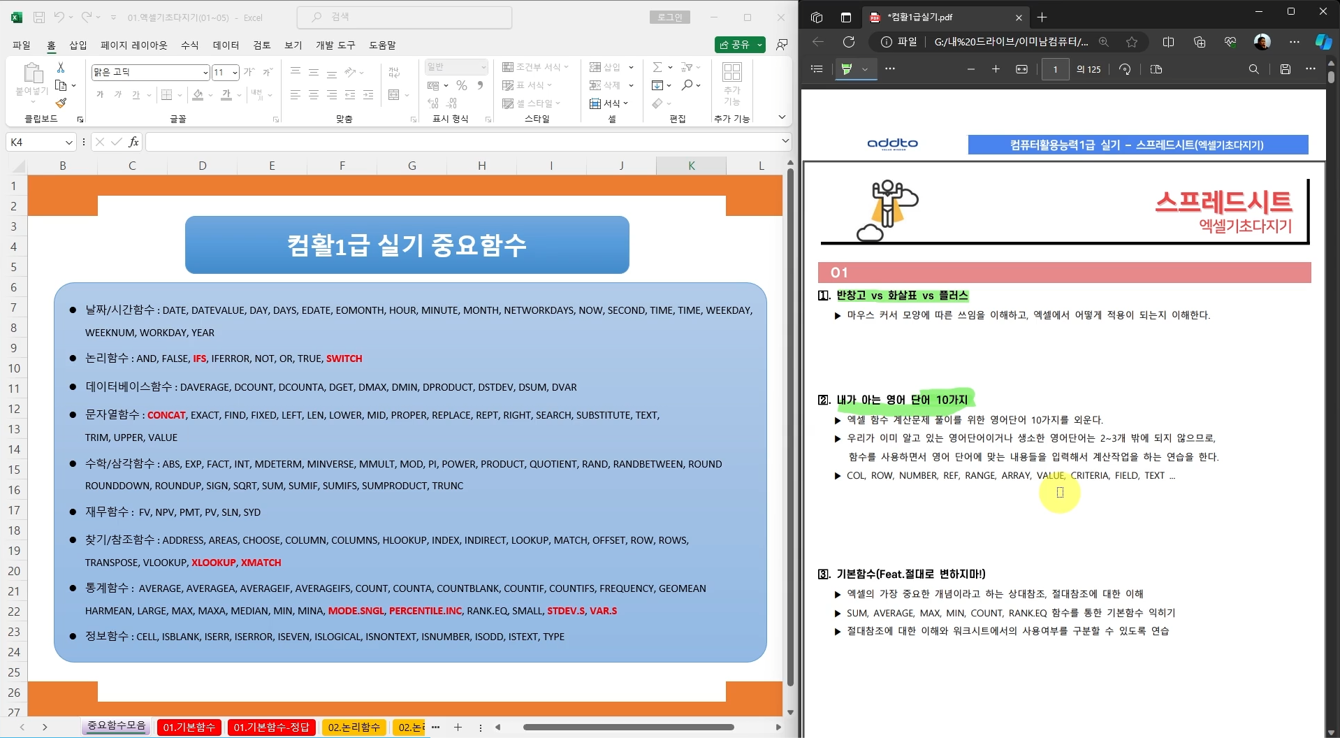 이번주 주말 시험을 대비해서 애드투 이미남 선생님의 컴퓨터활용능력 1급 실기 기출특강 3회차 1강을 수강하였다.