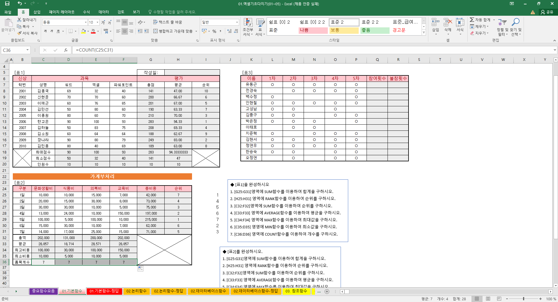 확실히 실기 문제를 먼저 풀어보고 필기를 시작하니까 엑셀 이해도가 올라갔고 워크시트 관련 문제는 쉬웠던거같아요.