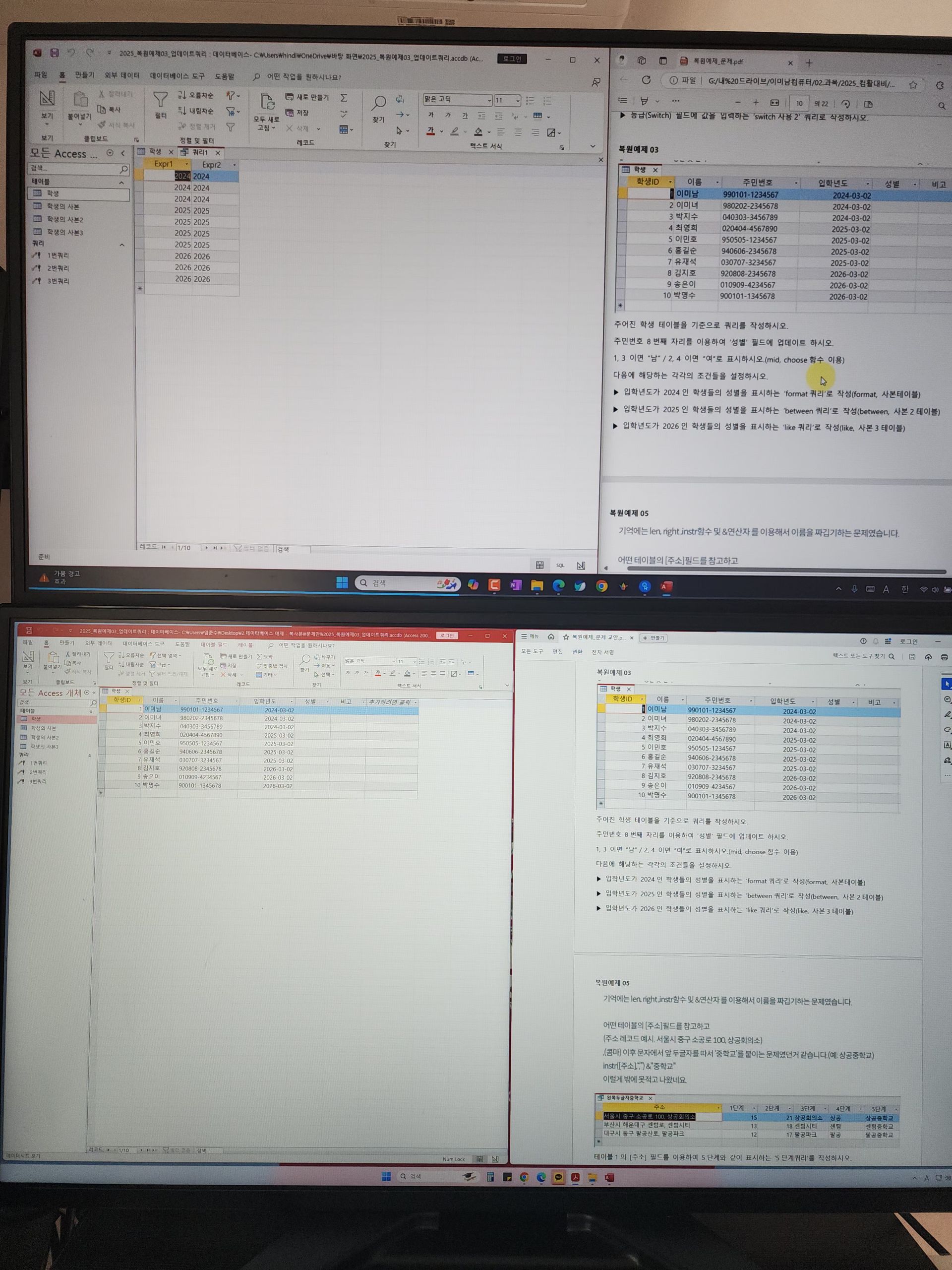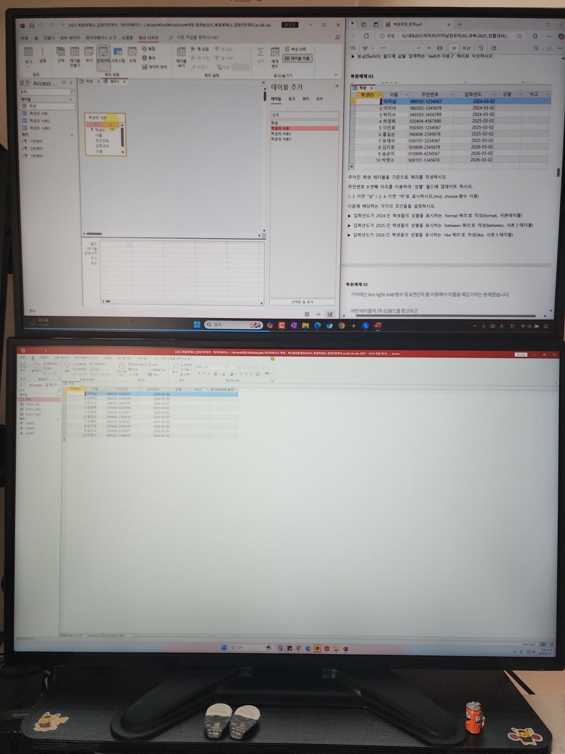 특히 액세스는 처음 들어서 처음에 따라가기 너무 힘든 거에요. 그래서 교재를 하나는 필기 있는 버전, 하나는 필기 없는 버전으로 해서 처음에 할 때는 필기 마구마구해서 밖에서도 쉽게 볼 수 있게 메모를 했구요. 하나는 필기 없는 버전으로 해서 실전처럼 연습할 때 패드 세로로 세운 후에 시험장처럼 연습했습니다!