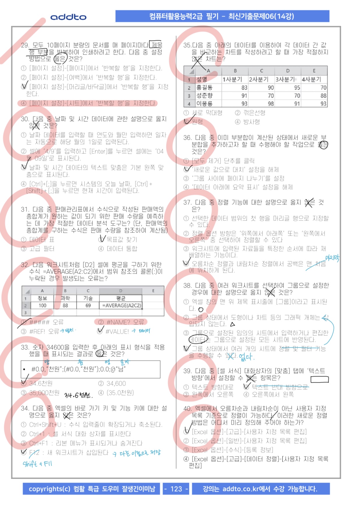 확실히 실기 문제를 먼저 풀어보고 필기를 시작하니까 엑셀 이해도가 올라갔고 워크시트 관련 문제는 쉬웠던거같아요.