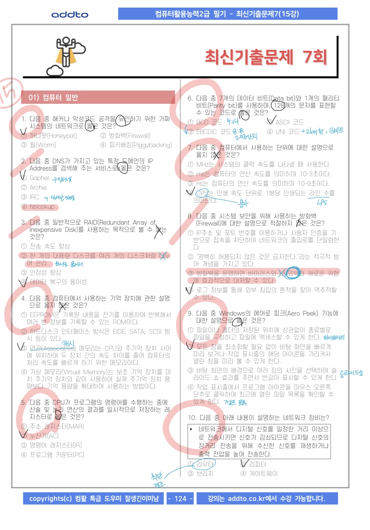 사실 필기는 주변에서 쉽다고하길래 교재로만 먼저 읽고 모르는 부분만 강의 들어야지 했거든요, 근데 저 같이 컴퓨터에 대한 기본 지식이 조금이라도 없는 분은,,, 그냥 강의 처음부터 열심히 듣는게 제일 빠르고 효율적인 방법인거같아요. 강의를 안들었다면 혼자 맨땅에 헤딩하며 필기 꾸역꾸역공부했을거같은데 강사님이 오히려 실기문제를 먼저 풀어보는 방법을 추천하셔서 실기강의를 냉큼 먼저 들었어요.