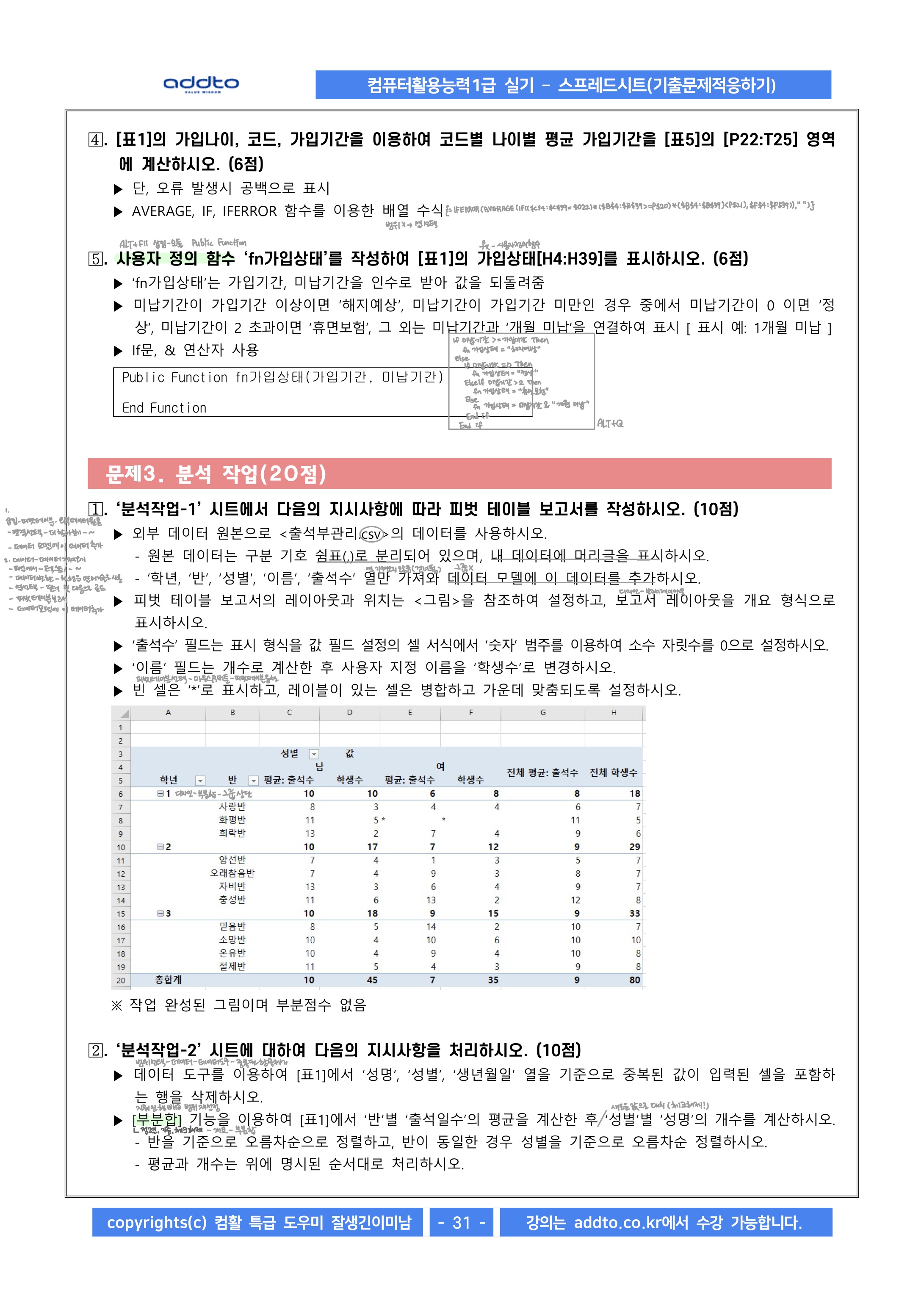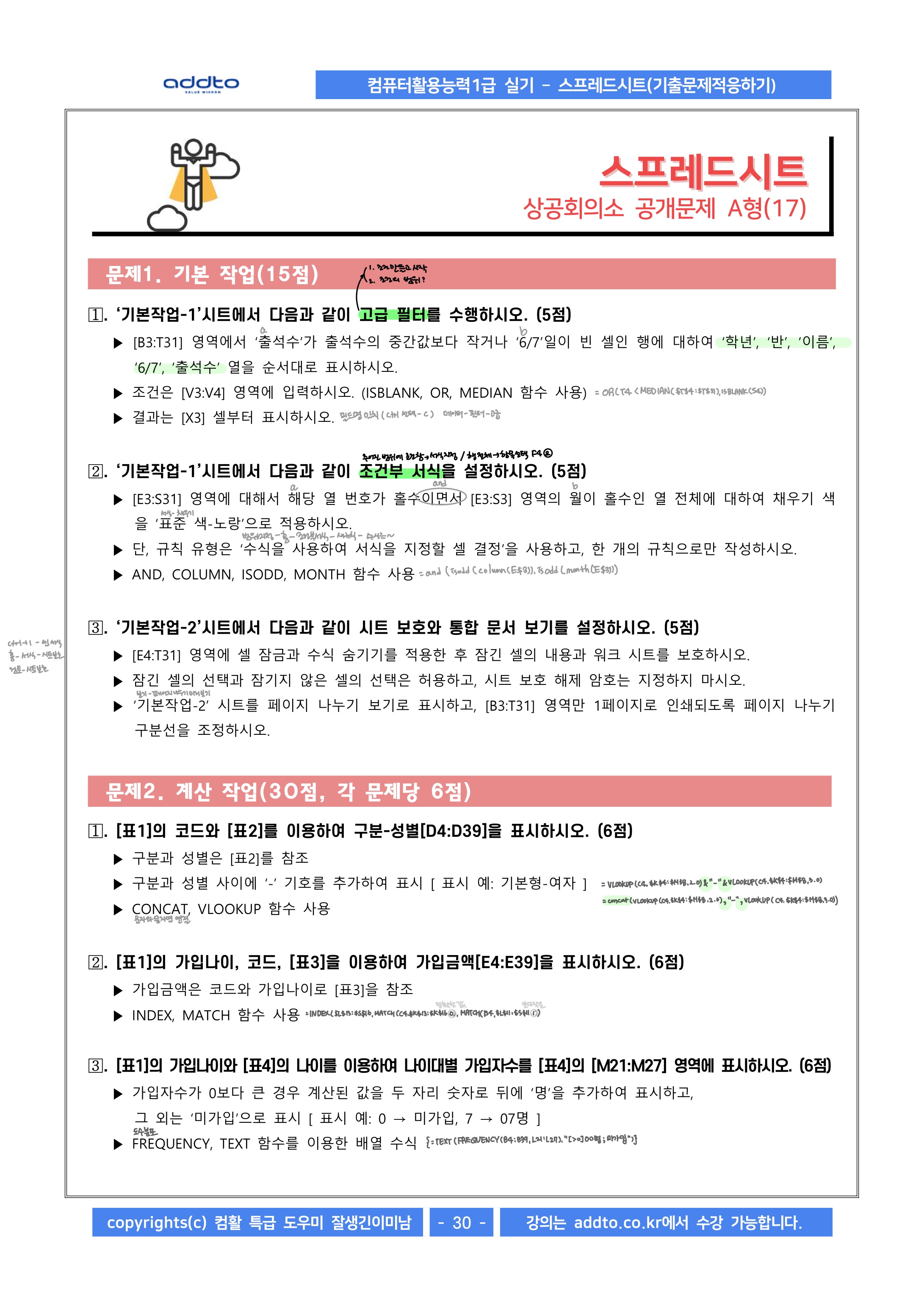 문제풀이 파일과 정답파일을 같이 주시는데 엑셀 나누기 등 최신 문제 반영이 매우 잘되어있어요 !