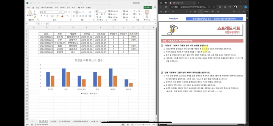 애드투사이트에서 이미남 선생님의 컴퓨터활용능력1급 실기학습영역 강의 중 엑셀 기출 문제를 풀고 있습니다.