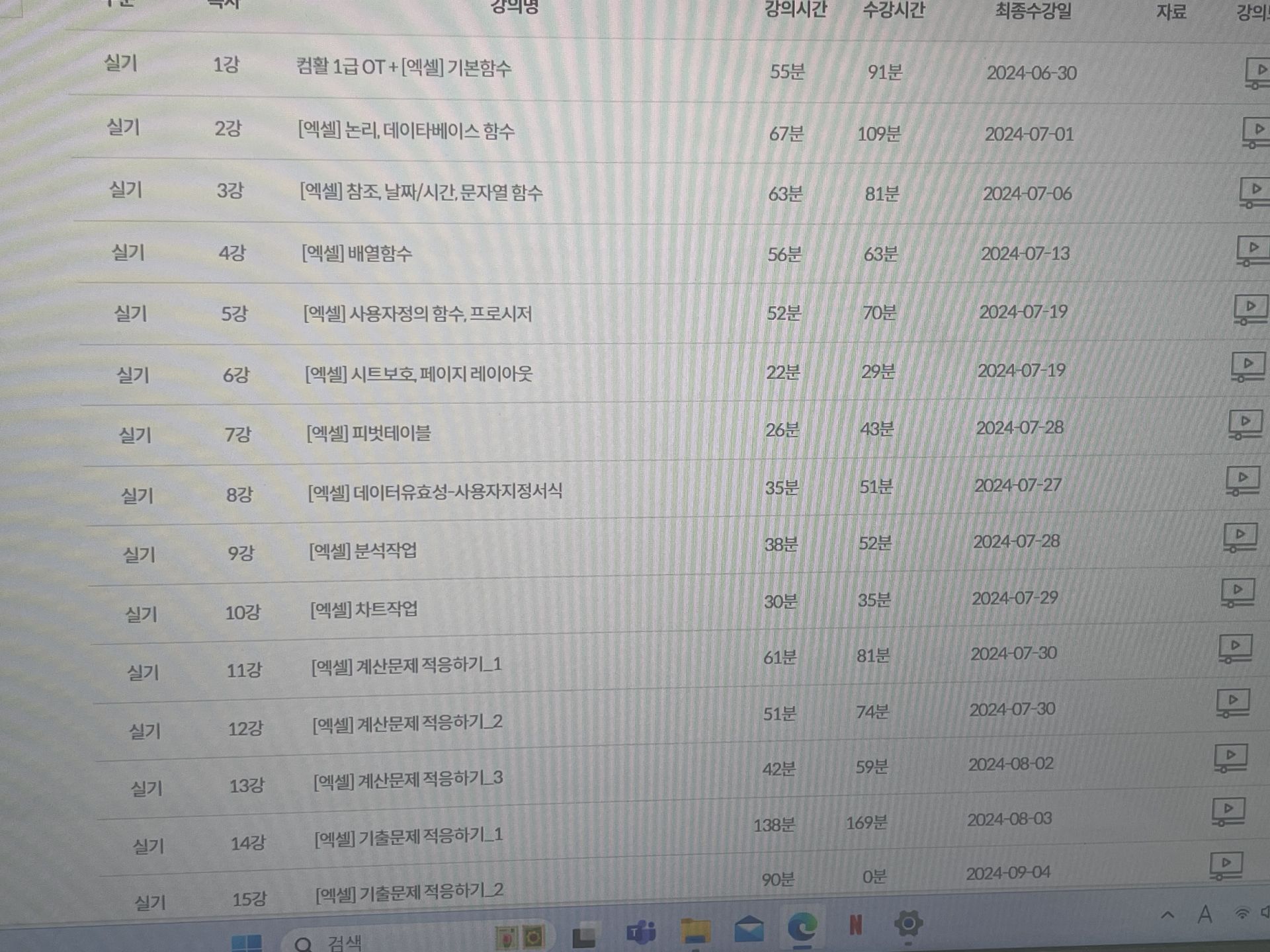 이러한 내용들을 타 인강들과 비교했고 결국 한정된 자원 안에 선택한 건 "애드투 이미남 컴퓨터활용능력 1급 인강"입니다! 주변에 같이 컴활 준비하는 친구들한테도 홍보하고 있고, 타 인강 듣는 친구들의 불편을 토로하는 걸 듣고 있으면 저는 정말 잘한 선택을 했더라고요! 강추강추합니다! -