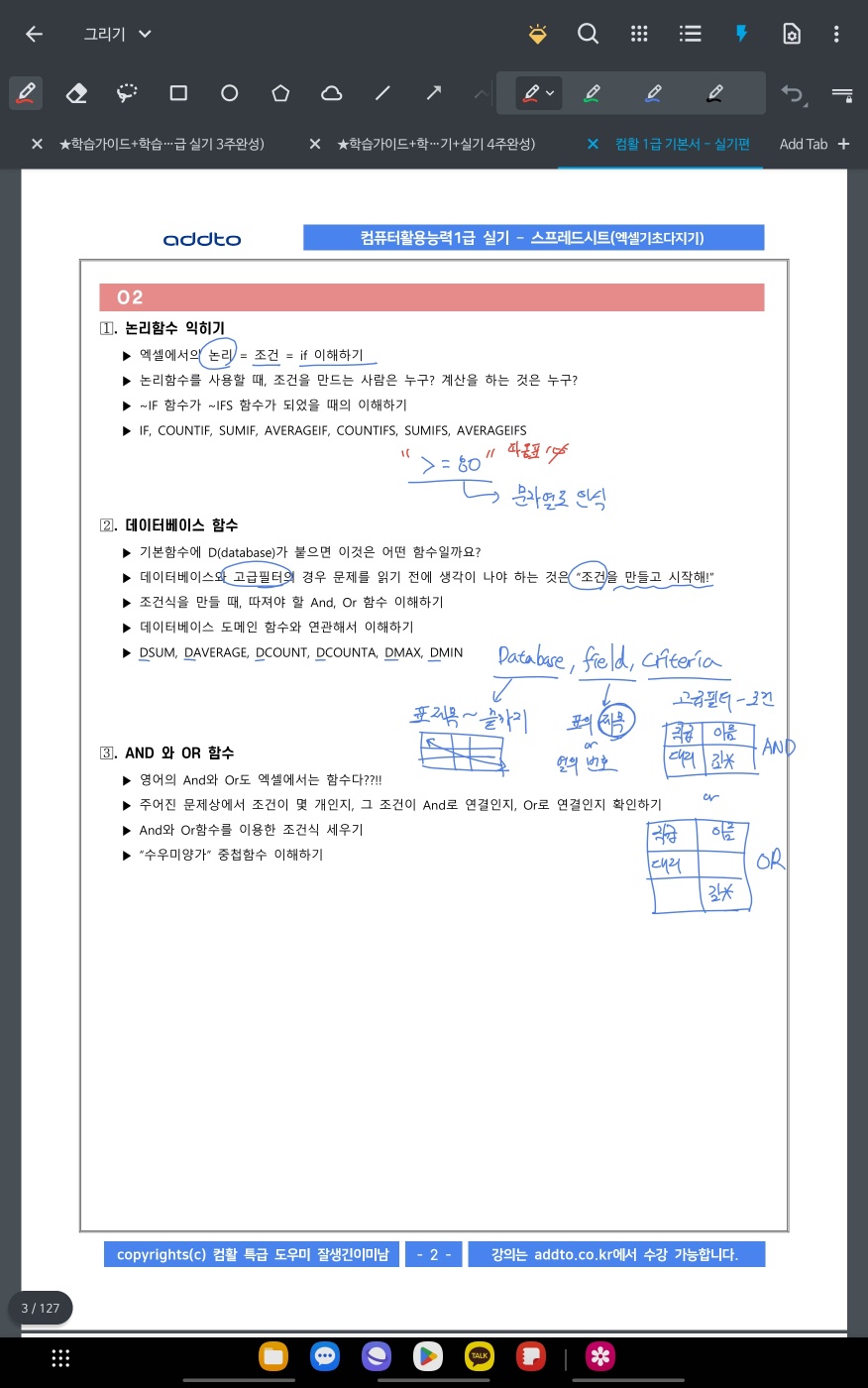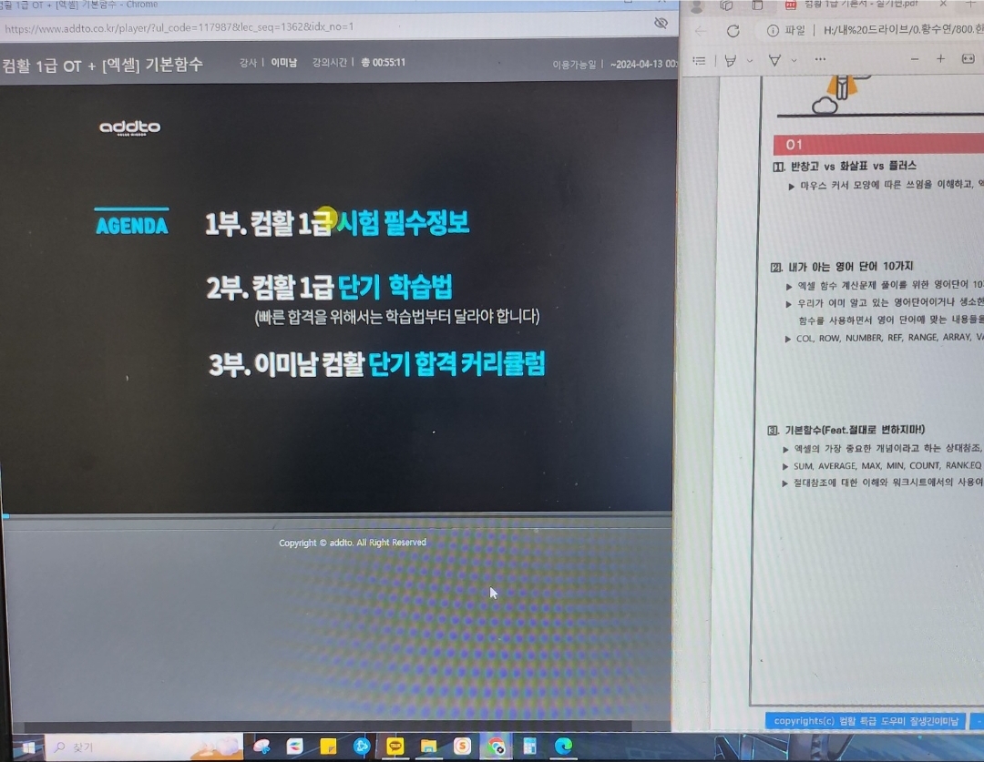 컴활 2급 정말 예전에 취득하고 그 뒤로는 컴퓨터 자격증을 취득하지 않아서 막막했어요. 이번에 취업 준비하면서 컴활 1급 한 번 꼭 취득해봐야겠다고 생각하고, 애드투 이미남 선생님 강의 듣고 있습니다.