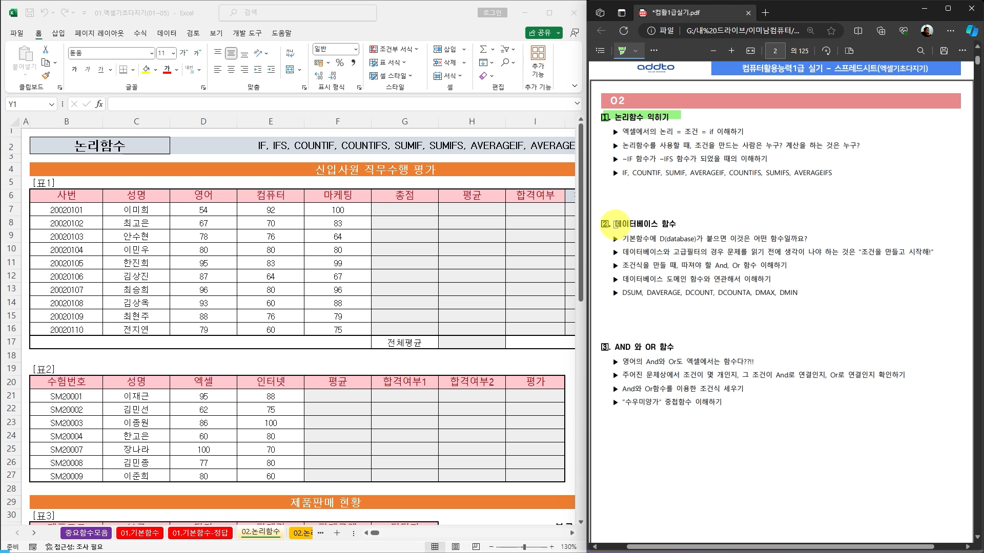 ●독할 할 때는 컴활 2급에서 나오는 함수가 왜 이렇게 쓰이는지에 대한 기본지식도 없어 맨붕이 왔는데