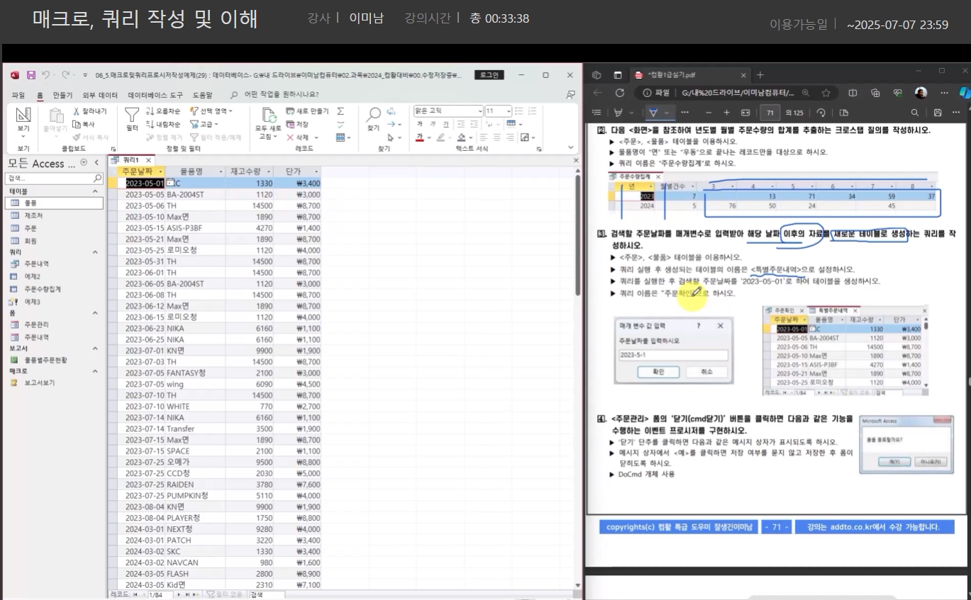 이러한 내용들을 타 인강들과 비교했고 결국 한정된 자원 안에 선택한 건 "애드투 이미남 컴퓨터활용능력 1급 인강"입니다! 주변에 같이 컴활 준비하는 친구들한테도 홍보하고 있고, 타 인강 듣는 친구들의 불편을 토로하는 걸 듣고 있으면 저는 정말 잘한 선택을 했더라고요! 강추강추합니다!