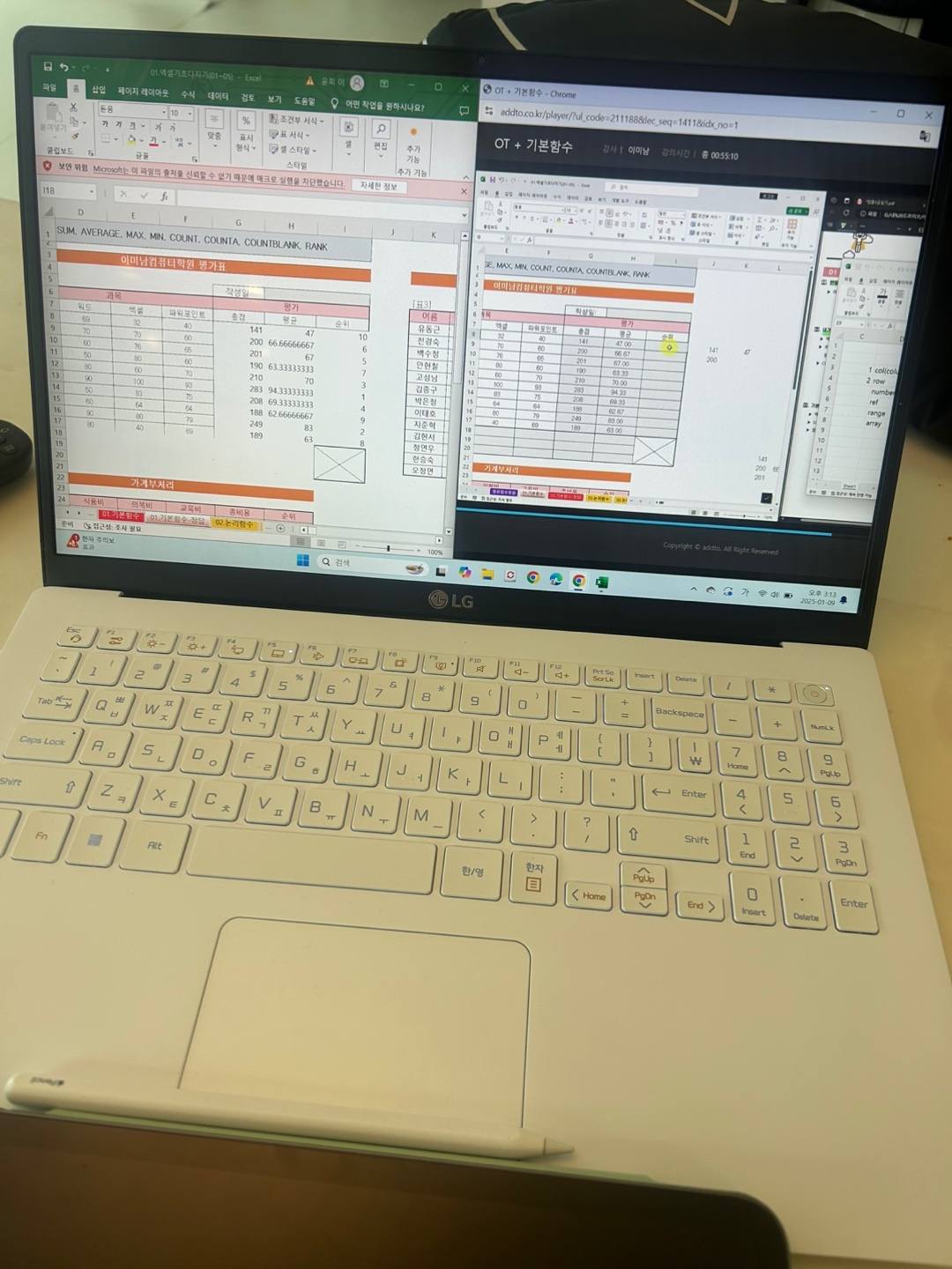 그래서인지 필기를 합격하고 독학으로 실기 준비하다보니 함수라는 거대한 벽에 막혀 미루고 미뤄 필기 합격 유예기간 15일 남기고 부랴부랴 "애드투 이미남 강사님의 컴활 2급 실기" 강의를 듣게 되었어요. (포기하기엔 필기 합격이 너무 아깝잖아요...ㅠ)