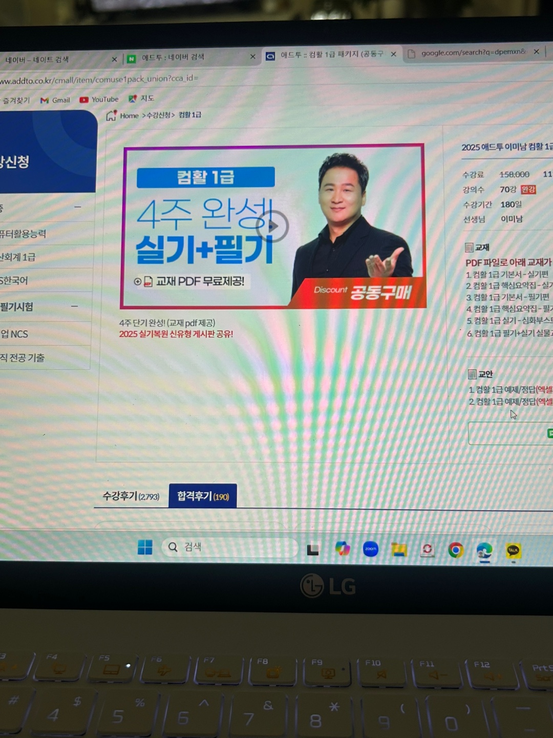 우선 취준생이라 적은 비용으로 가장 큰 효과를 뽑아내야 했기에 심사숙고 끝에 애드투 이미남 컴퓨터활용능력 1급을 선택하였습니다.