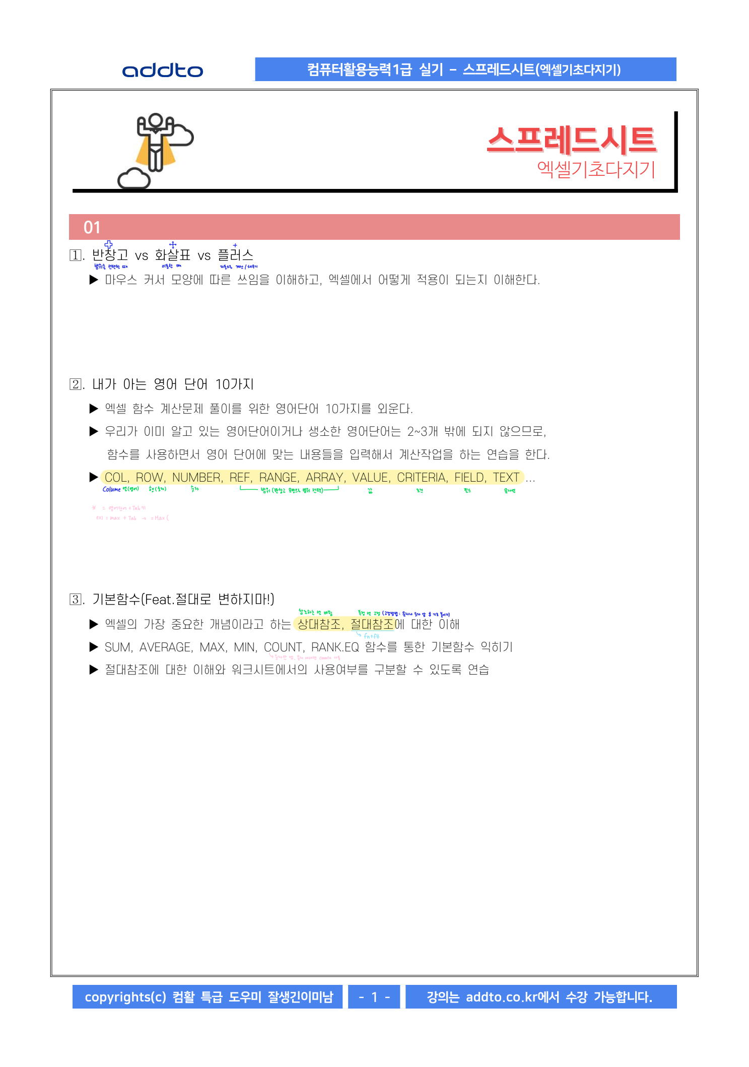 컴활 1급 실기 엑셀기초다지기 1강 애드투 이미남 선생님 강의 후기